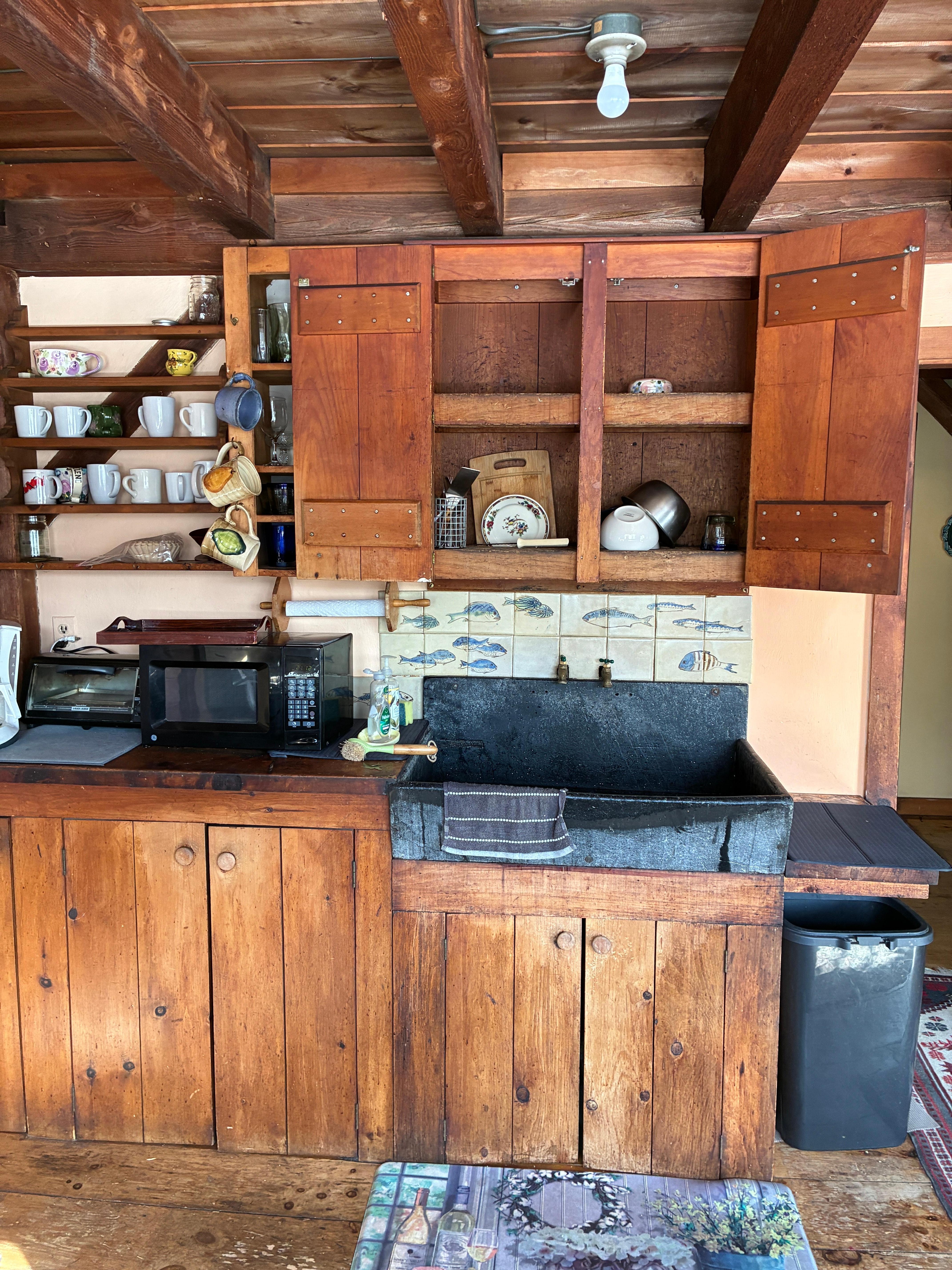 This house is on a remote, dirt road surrounded by 10 acres of private forest, yet 15 minutes from town. The space is filled with antiques, art and wood stoves. Hiking trails are steps from the house with bubbling brooks all around. * There are two rentals on the property in case you were booking with two parties. Each house has its own private deck and surrounding gardens. The other house is not available in Winter. Guests have said their favorite spot is on the deck, perfect for outdoor dining and watching the stars at night.
