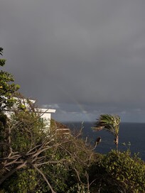“Mini-Margarita” is a spacious studio apartment overlooking the ocean from the island of Hans Lollik to Jost Van Dyke, Tortola, St. John, and beyond. From the cliffside deck you can enjoy fresh ocean breezes in this tropical getaway. The studio is furnished with a king bed, futon, a bistro set, a compact kitchen (two burner gas cooktop, micro/convection oven, and full-size refrigerator), and a small BBQ. Relax and sunbathe on the deck or discover the islands many treasures. Beach towels and a cooler are provided if you wish to explore some of the island’s beautiful beaches, including Magen’s Bay Beach which is only 2 miles away.