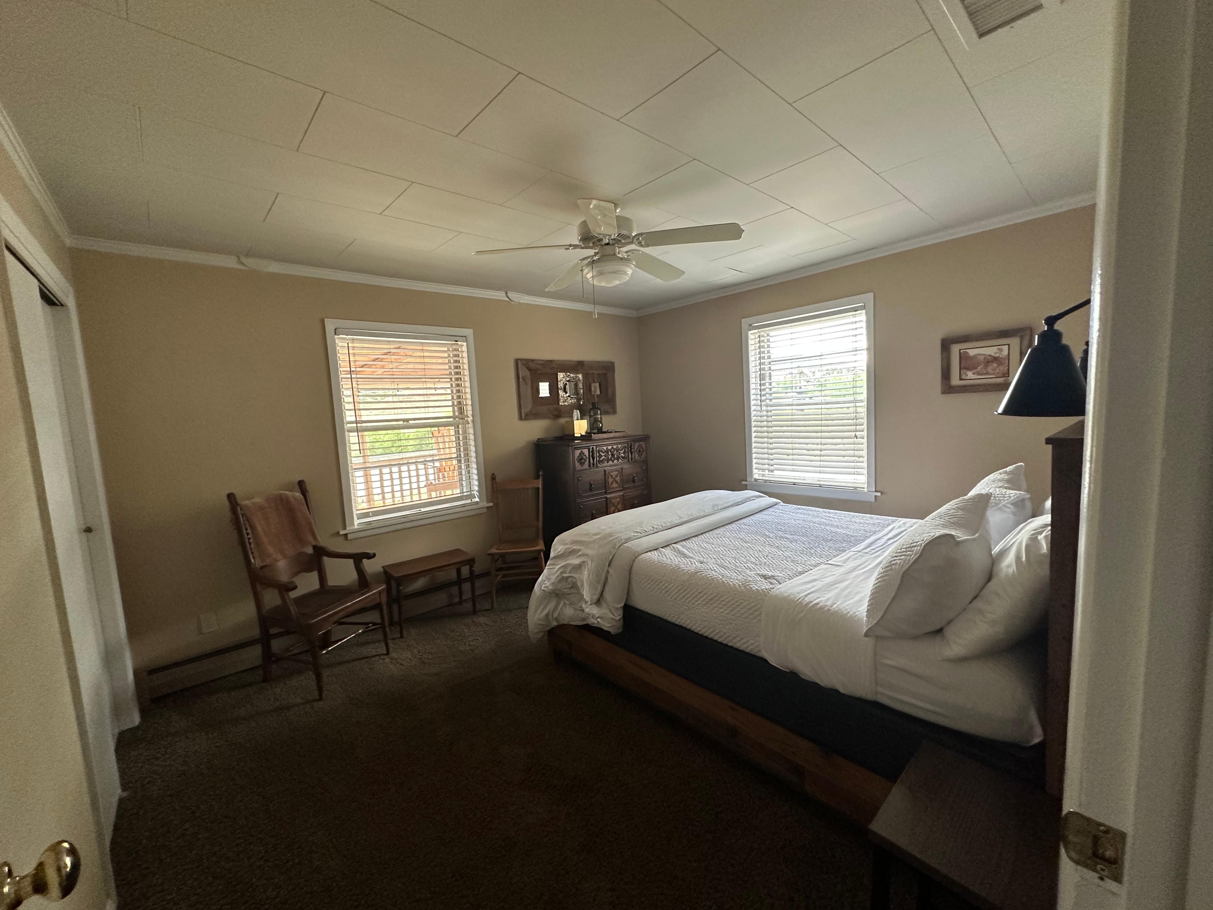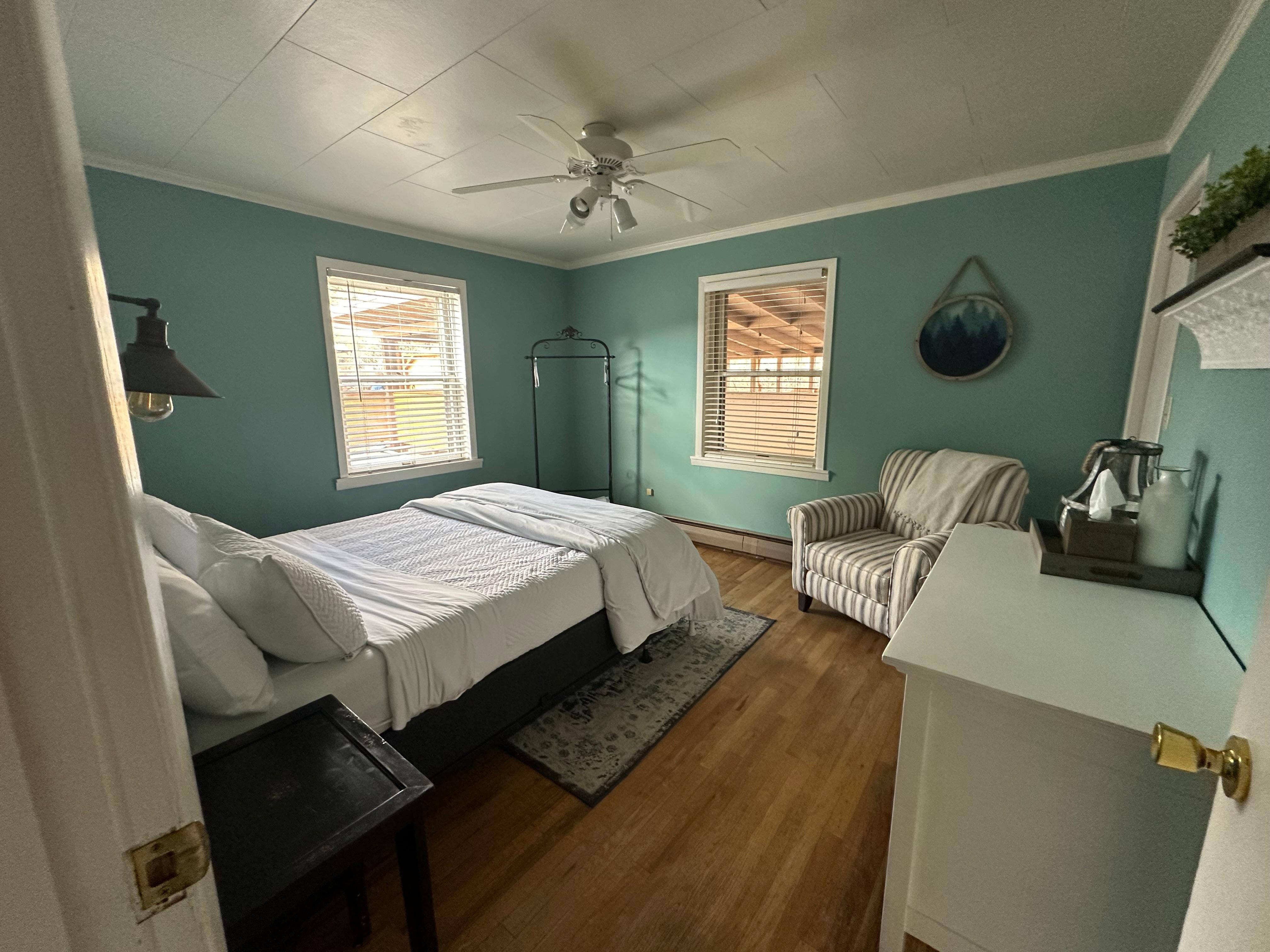 The comfy lodge was remodeled, has new furniture, and is ready with all the amenities of home including a massive covered back patio great for cooking out and having dinner or just sitting back and reading a book. The private back patio has plenty of room to keep your recreational equipment secure and out of the elements, including a bike rack and towels to wipe down your bikes and kayaks. The front patio is a great place to enjoy morning coffee or an evening night cap while soaking in the great views of Fremont Peak sitting at the propane fire pit table. Each of the three bedrooms has a queen bed and ample room to unpack your belongings. The dining room and living room have large windows with views of Fremont Peak and the zen garden. The kitchen has a farm look with modern appliances including a microwave, dishwasher, and oven.