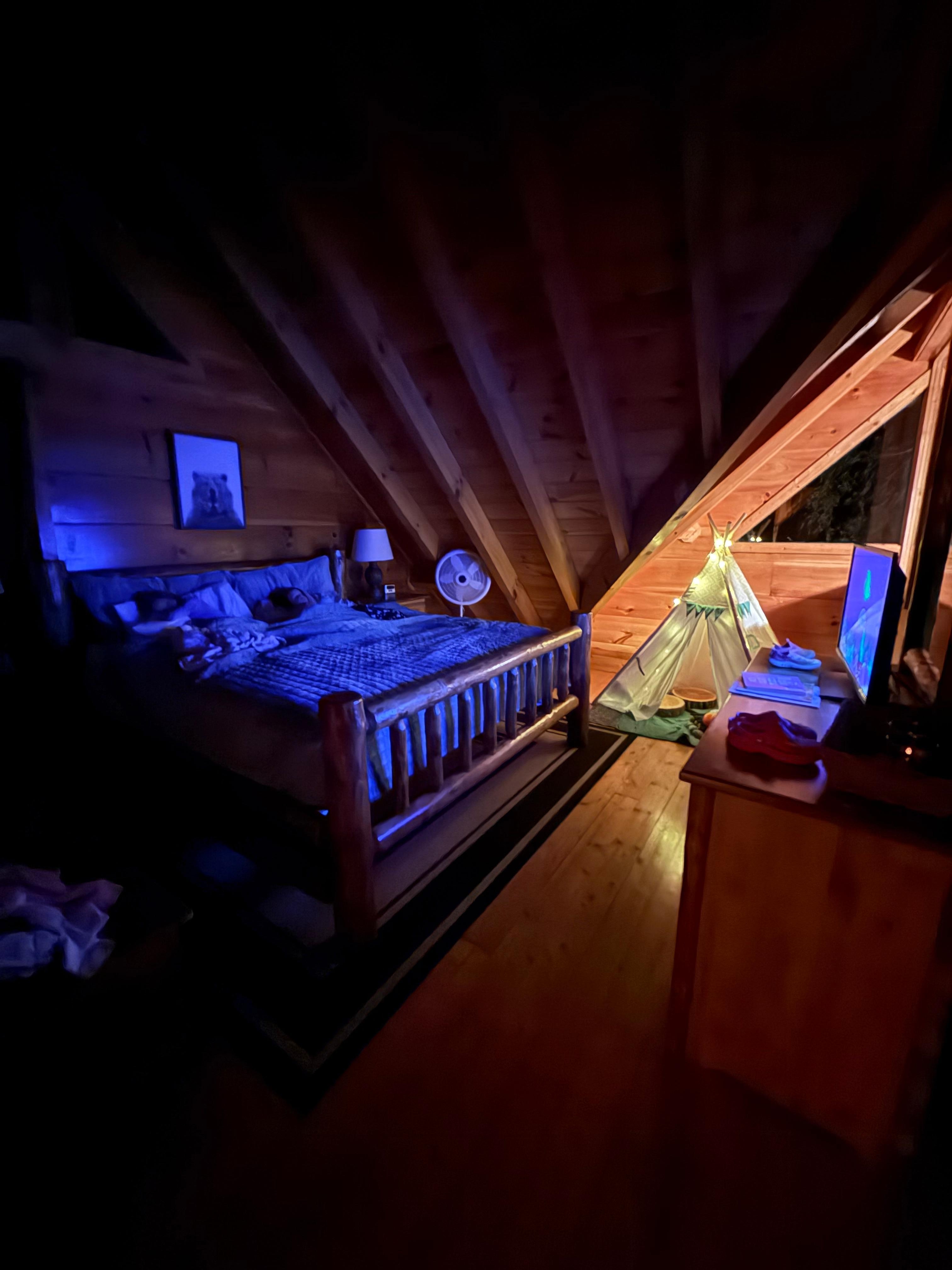 Need more entertain and sleeping options? In the loft, you will find an arcade with all of your old school favorites, like Pac-Man, Galaga, and Donkey Kong. We also have a full sized foosball table, and several board game options. The loft also features a new twin bed and TV.
