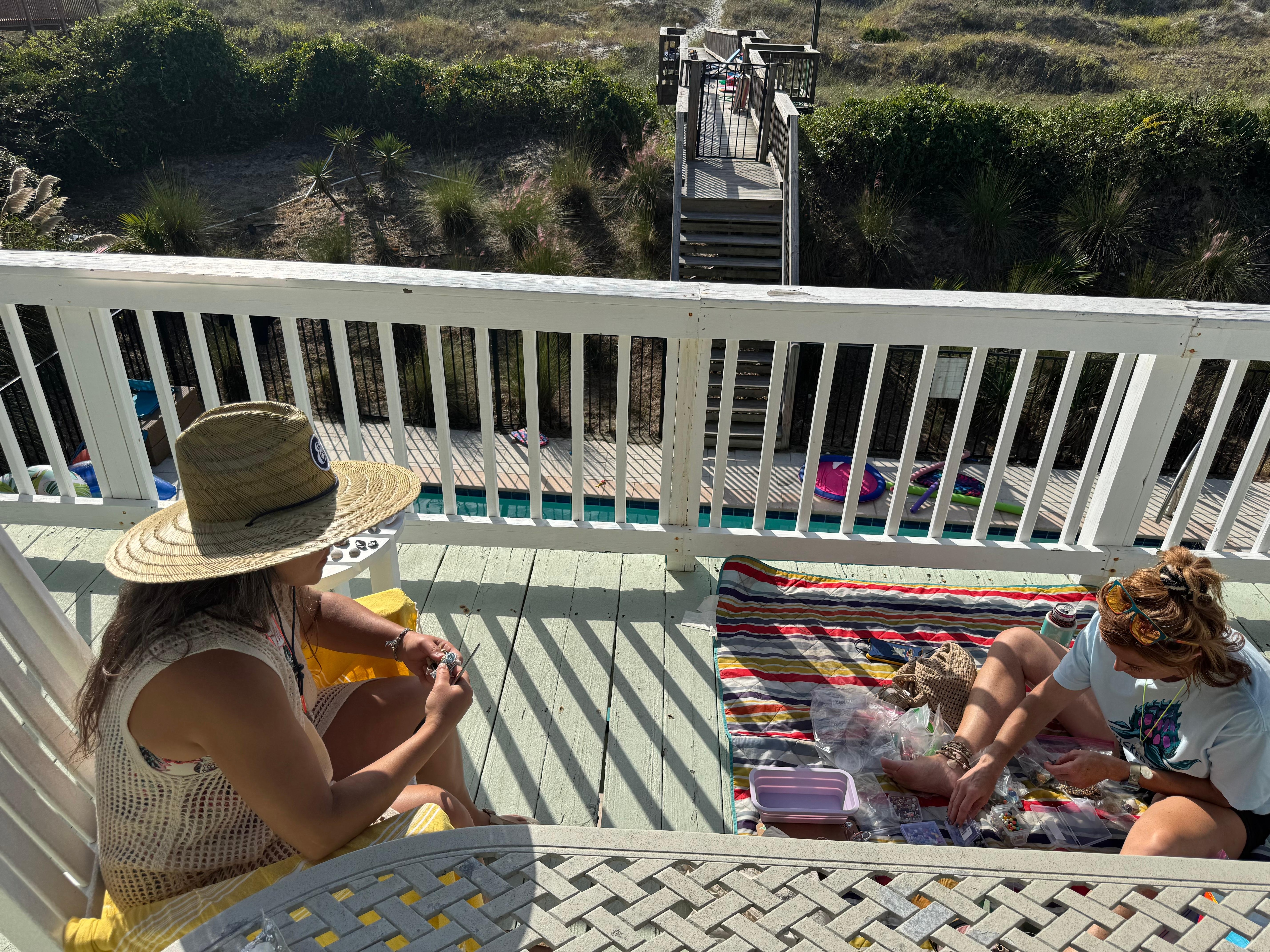 This fabulous home provides a lovely oceanfront covered porch where you can sit and enjoy the views. You can also go swimming in the private pool or relax in the hot tub.