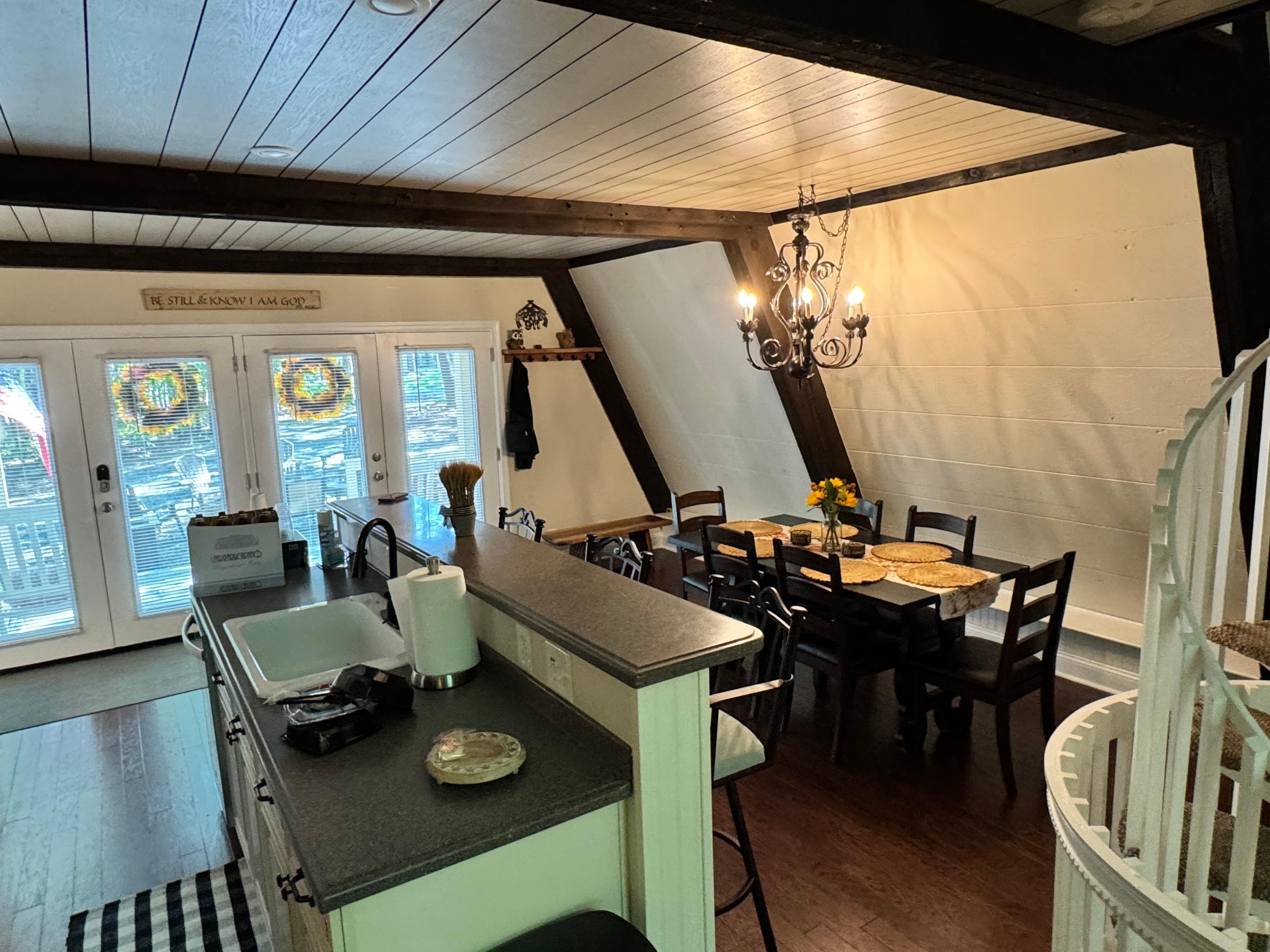 Due to the unique A-frame design, the home features just one shower (one full bathroom), which is thoughtfully maintained and conveniently located.