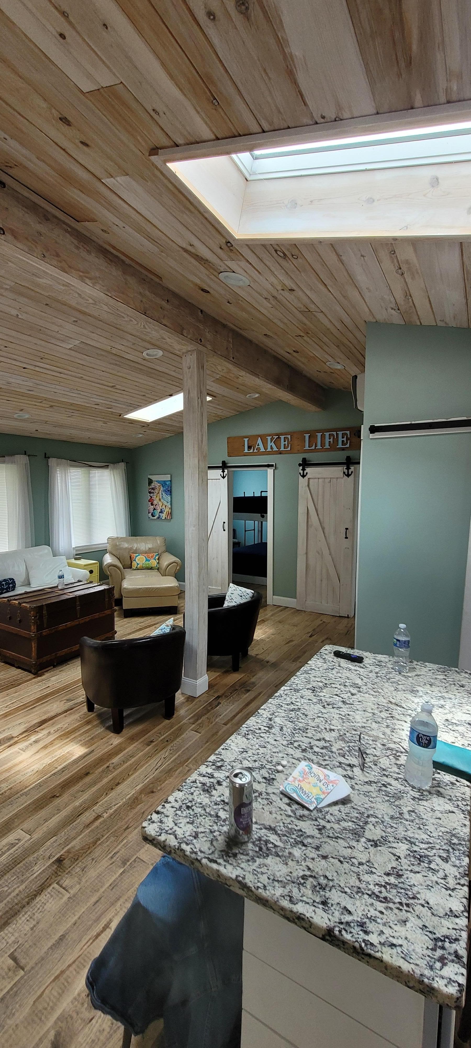 Tucker,s Beach Glass Cottage is newly remodeled two bedroom one and a half bath cottage. This cottage boast beautiful kitchen with granite counter tops. Vaulted ceilings With skylights, hardwood floors, reading nooks. Enjoy outdoor space rain or shine with large covered deck. Enjoy your morning coffee on our porch swing or a glass of wine after your GOTL adventures. Relax by the fire pit with s’mores and your favorite beverage. Take a quick walk across the street to view the amazing Lake Erie sunsets. We are across the street from a convenient store for last minute needs.