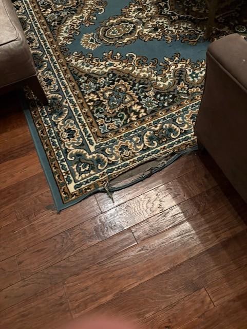 - Living Room: Wood burning fireplace, large sofa, flat screen TV, queen sleeper sofa