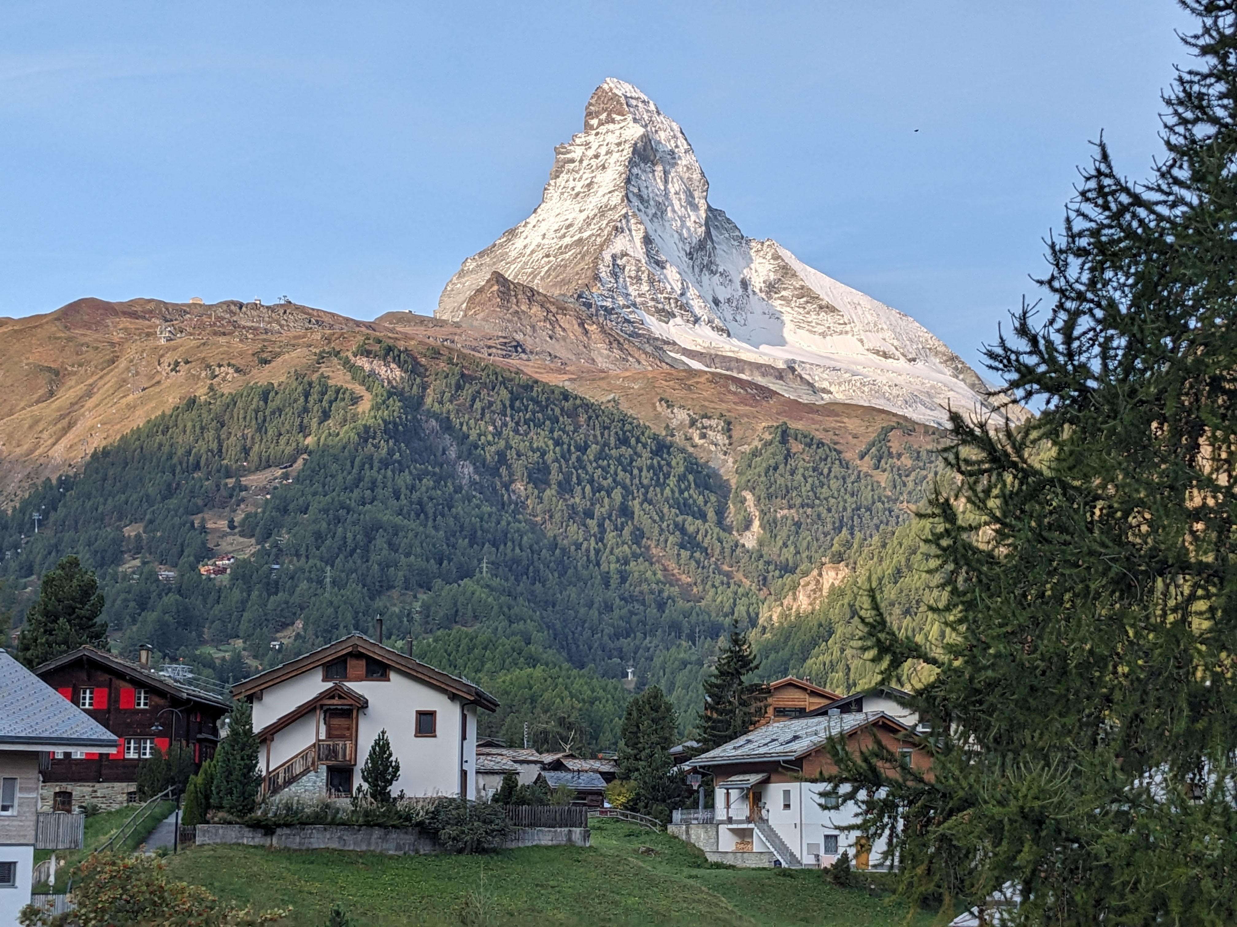 3-room apartment 85 m2 on 3rd floor. Partly renovated in 2018, simple and cosy furnishings: living/dining room with open-hearth fireplace, dining table and cable TV. Exit to the balcony. 1 double bedroom with 2 beds (90 cm, length 200 cm). 1 double bedroom with 2 beds (90 cm, length 200 cm). Small kitchen (oven, dishwasher, 4 ceramic glass hob hotplates, toaster, kettle, freezer, electric coffee machine, raclette grill, fondue Set (cheese)). Bath/WC, shower/WC. Balcony 10 m2, south facing position and west facing position. Balcony furniture. Very beautiful view of Matterhorn. Facilities: hair dryer. Internet (WiFi, free). Please note: non-smokers only.