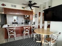 This is a very beach friendly unit. Clean with all the amenities. Gorgeous view and plenty of privacy. Perfect for a couple or a family of four. The beds are both queens and very comfortable. Hope you come and spend a wonderful week or more. There is a washer/dryer in the unit as well as garbage disposal and self clean oven. A new queen sleeper sofa is in the living room. New tile floors and new countertop. No fuss, no muss. We have recently added wifi.