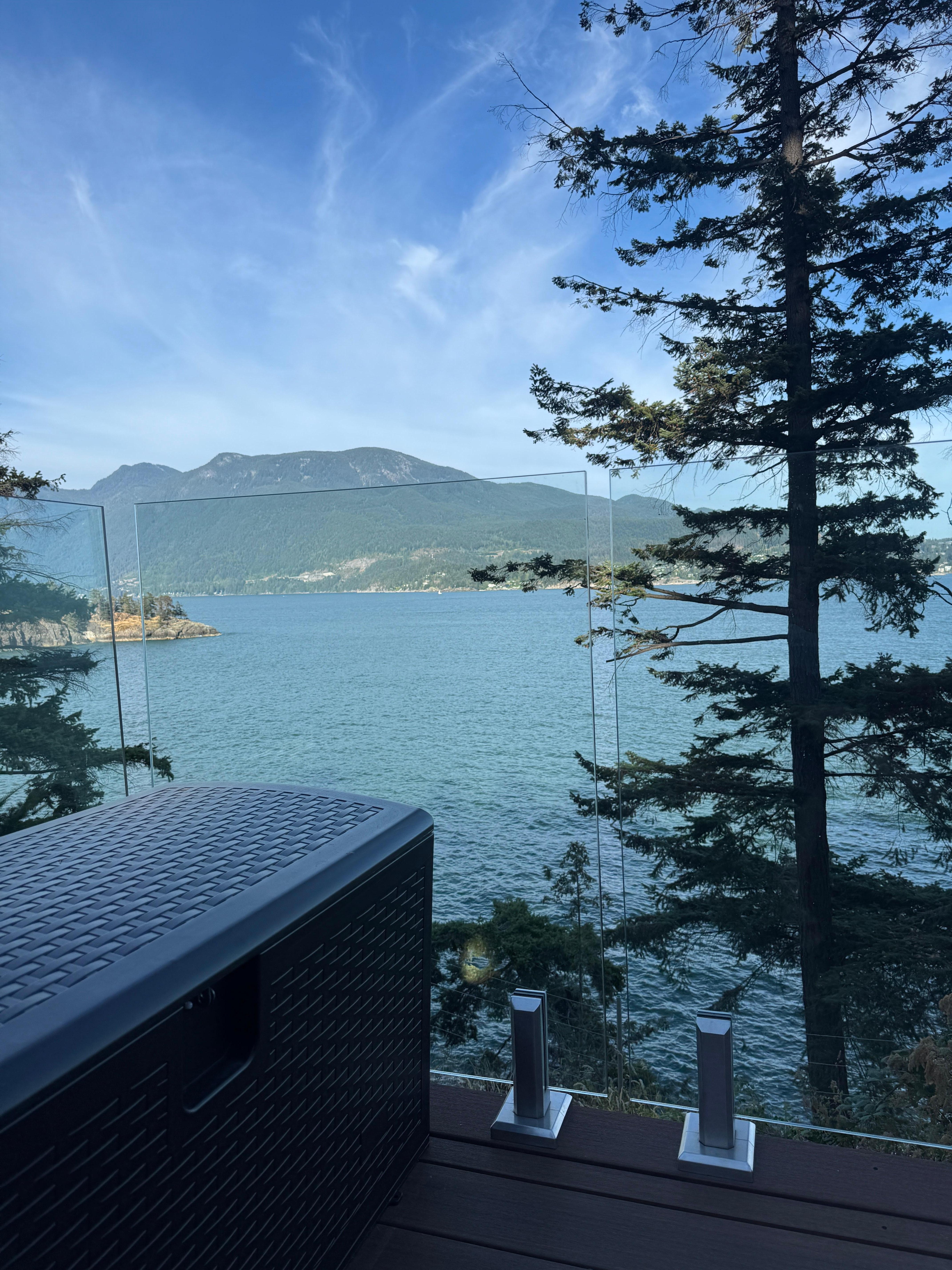 The main house accommodates 4 private suites (Cypress Mountain Suite, Mount Strachan Suite, St. Mark’s Summit Suite, and David Peak Suite). The suites range between 200 sq.ft to 250 sq.ft. Each suite has its own private exterior entrance, king/queen bed, private bathroom with rain shower, heated bathroom floor & heated towel rack, flat screen TV, dining area, and kitchenette (mini fridge, microwave, toaster, Keurig coffee machine, kettle, dishes & utensils). Due to our business license, we're not allowed to provide a hot plate/stove in our suites. The suites have access to three outdoor lounge areas, a shared hot tub, a shared wood barrel sauna, outdoor shower, a lawn games field with BBQ, a staircase to the ocean, and a communal fire pit area. All suites have access to high speed wi-fi and Netflix.