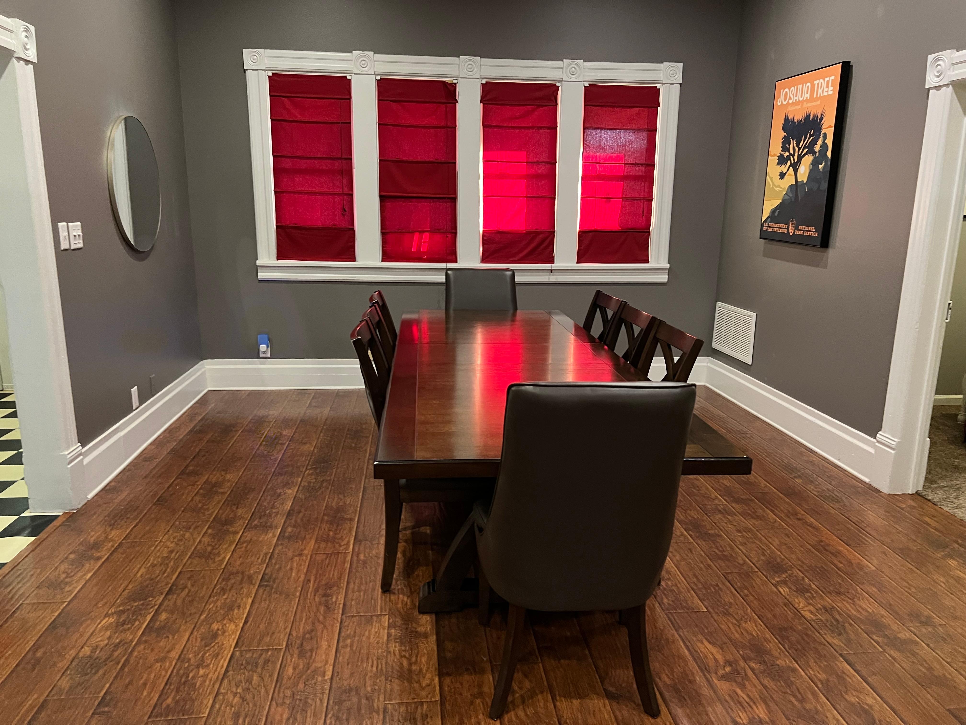 Sip your morning coffee in the private backyard surrounded by fruit trees. Make smores in the wood burning fire pit or relax in the shaded hammocks. Enjoy watching passersby from the rocking chairs on the large front porch. Gather around the large dining table as you spin tunes on the record player. So many things to make you feel at home.