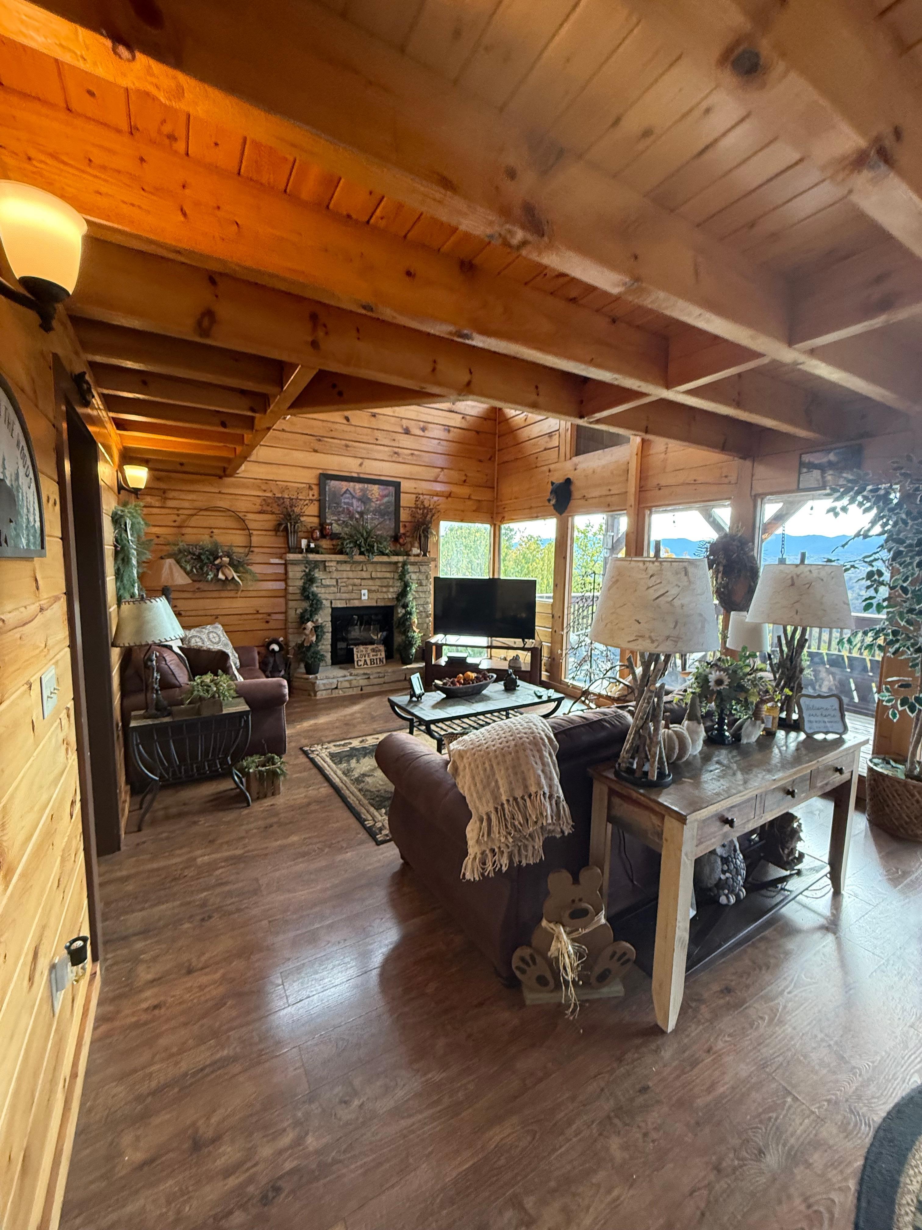 Welcome to Unforgettable, I would love to share my cabin with you. I have taken great pride in trying to make your stay with me is a truly" unforgettable" experience. There are a lot of cabins to choose from, but, I believe that once you have stayed in my cabin, you will want to come back year after year, and hopefully tell all your friends and family. It is so important to me that when you enter the cabin door that you feel that warm & cozy feeling, you deserve it, it is your vacation. I looked at a lot of cabins, but, when I found this one, that was it.....the unbelievable view 'sold me" as I am sure it will you too. Grab your cup of coffee in the morning and sit in the swing that is facing beautiful Mt. LeConte, it will make you forget all your troubles. There is a fully equipped kitchen, just in case you decide you want to cook...The living room features a New 55 in Smart TV, great for the guys, while you ladies go shopping. I have Xfinity cable & also have provided Netflix for my guests as well....