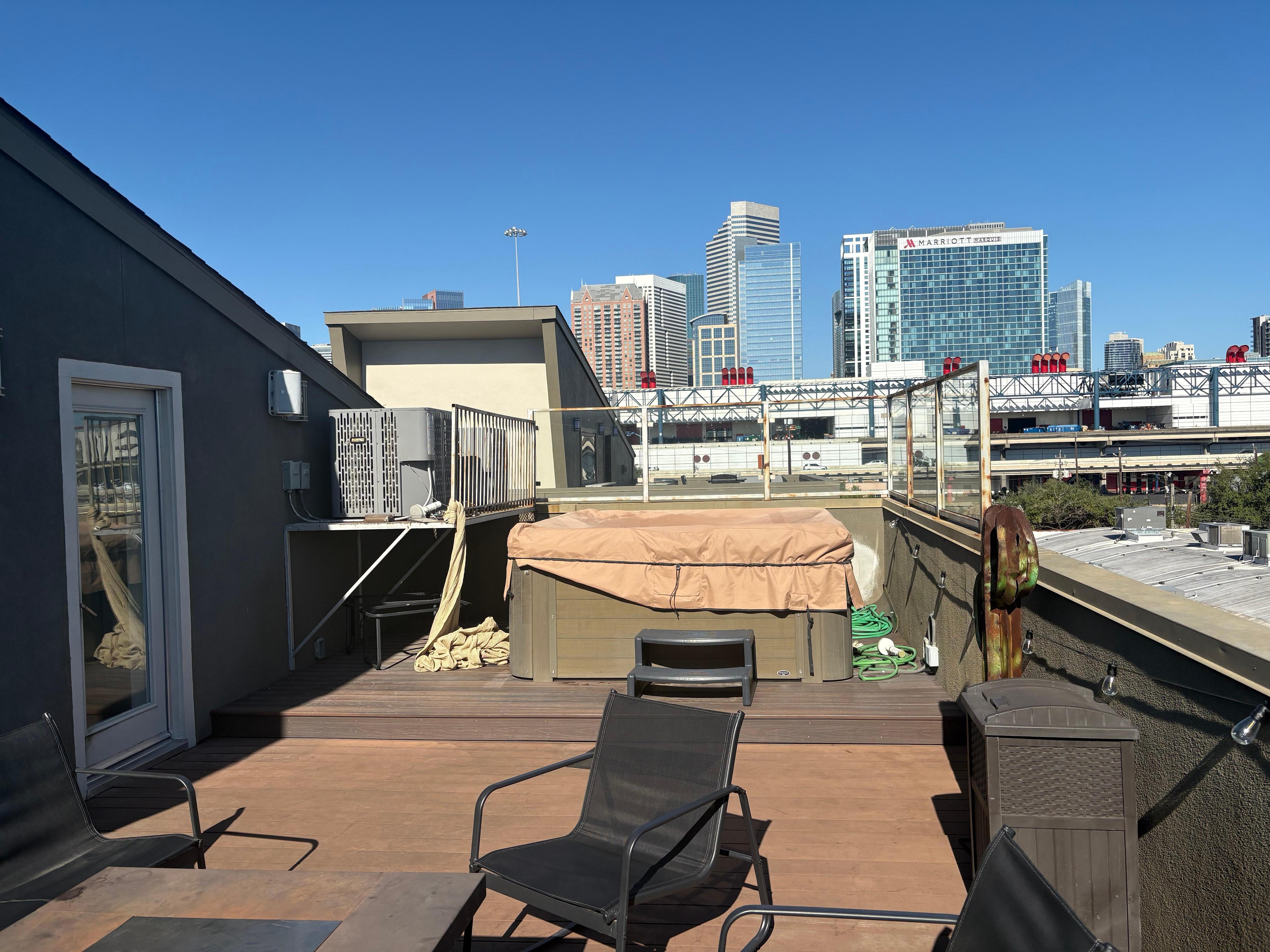 This gorgeous east downtown (EaDo) luxury townhome is located in the epicenter of downtown activity and is just blocks from Discovery Green, Minute Maid Park, The Toyota Center, BBVA Stadium, 8th Wonder Brewery, the GRB Convention Center and the thriving EaDo bar and restaurant scene. Boasting a rooftop deck with a bar, hot tub, fire pit and grill, our glam hideaway will show you the true meaning of our flying pig theme - that anything is possible if you can dream it up. The city is yours!