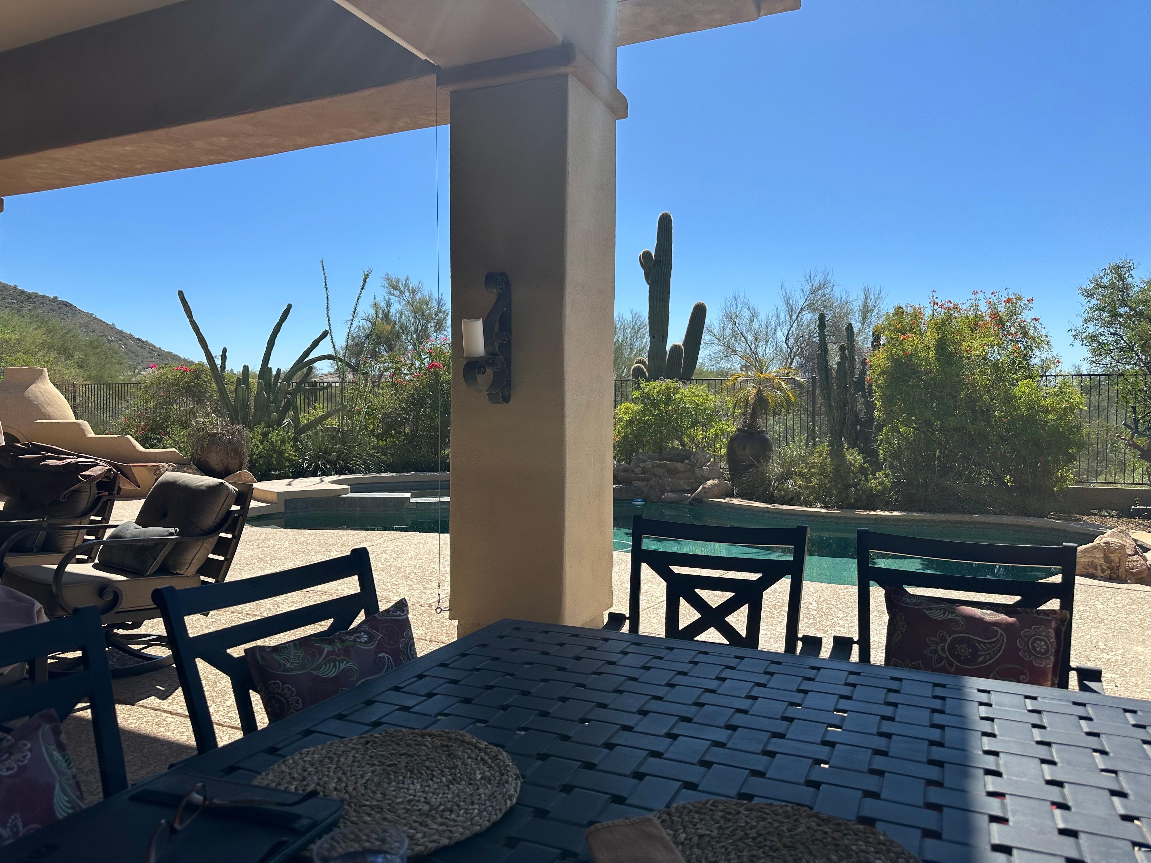 Remarkable 4 bedroom, 3.5 bath single-level home in the coveted guard-gated Bellasera. This 3200 sq. ft. home is nestled in natural desert with a Lone Mountain backdrop! It is five minutes from The Boulders Resort and minutes away from golf and trailheads.You will enjoy a spacious floor plan with soaring ceilings, huge great room, walls of windows, natural light - this home is bar none! Home is bordered with desert providing the utmost in privacy and views! Gourmet kitchen boasts center island, bar areas & seating, eat-in nook, and opens to dining room and great room with fireplace. Luxurious primary suite features views and a custom barn door for privacy to the ensuite. Two more generous-sized bedrooms share a Jack and Jill bathroom. In addition, there is a beautifully remodeled 1 bedroom, 1 bath attached Casita that has a private entrance with a desk to accommodate business needs.