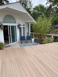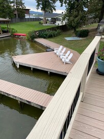 The cottage is tucked away in a quiet cove area of Lake Hamilton but a skip & hop to all the fun activities without having to drive far. The large deck that covers the boatslip convenient for all our boating activities...  The deck extends over the water, makes fishing very convenient!!!