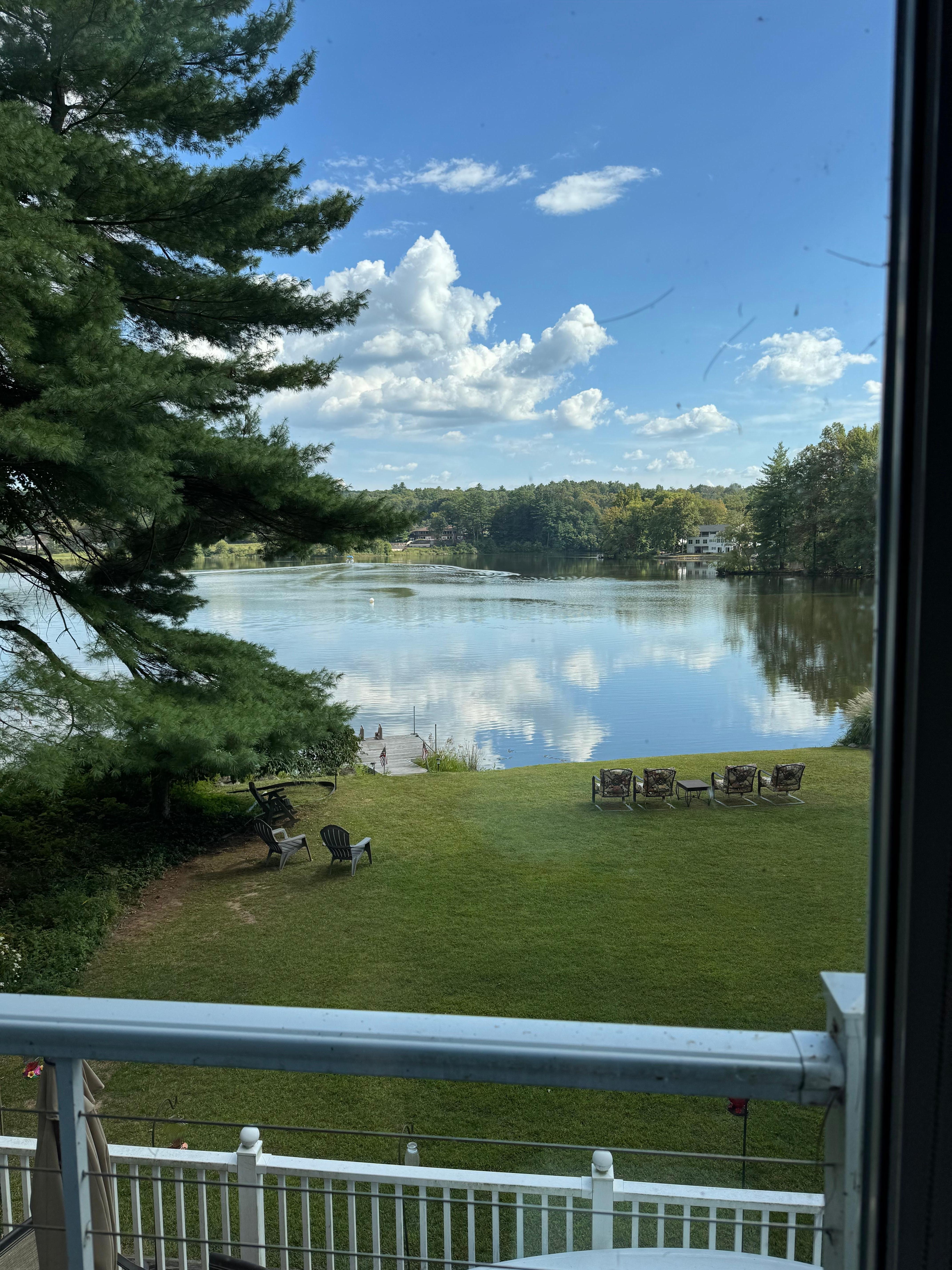 Experience a rejuvenating escape at our newly renovated 2-bedroom, 1-bath condo, nestled on the serene second floor with stunning views of a private 150-acre spring-fed lake in picturesque Sussex County. Relax in our glass-surround seating area, where you can cozy up with a good book and your favorite beverage while taking in the breathtaking lake views.