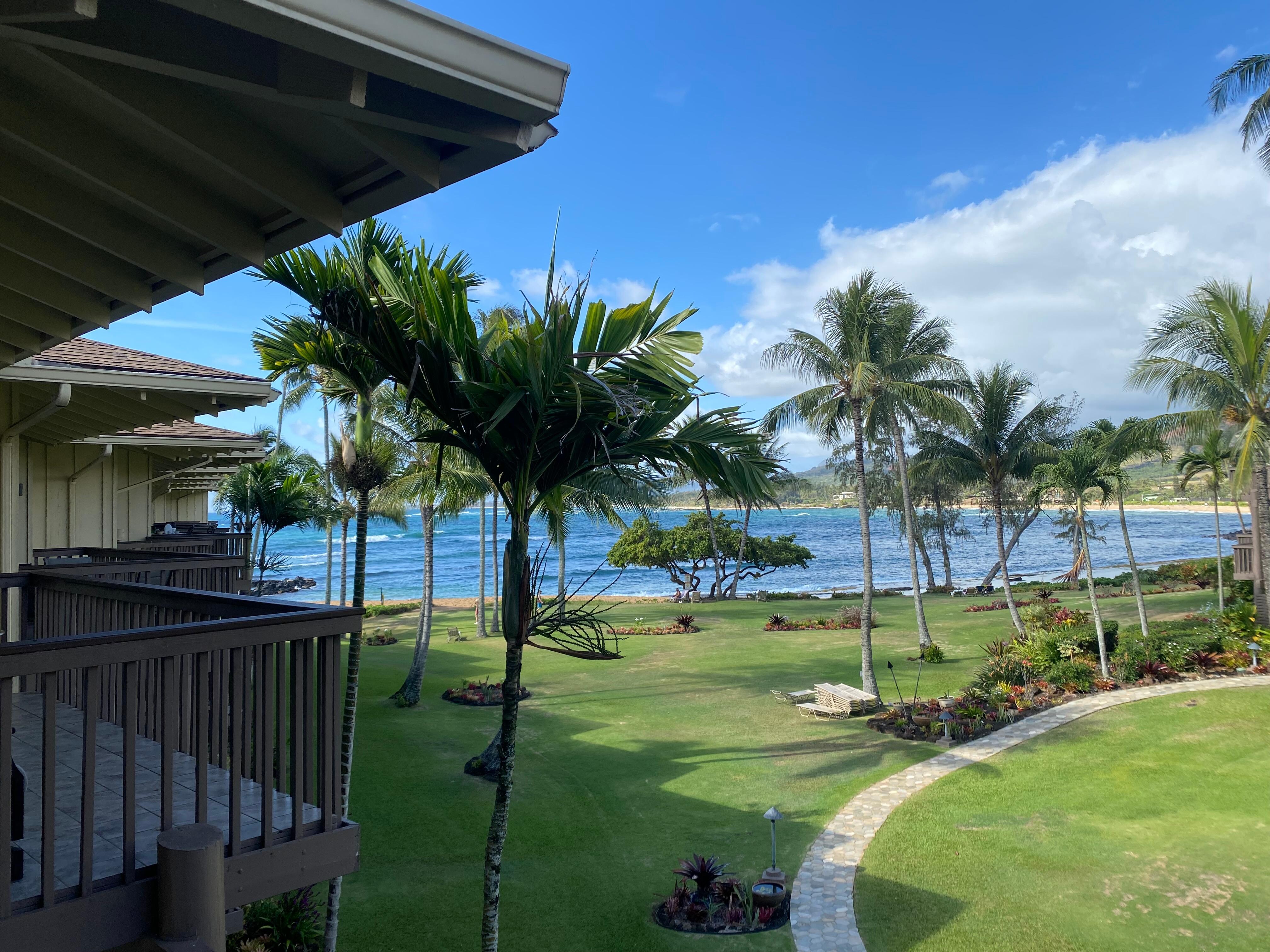A restful coastal vibe awaits in Lae Nani 338. This newly remodeled condo with AC sits on lush tropical grounds just steps from the ocean. With ocean views from the living room and a spacious master suite, this condo is ideal for couples in search of an oceanfront paradise.