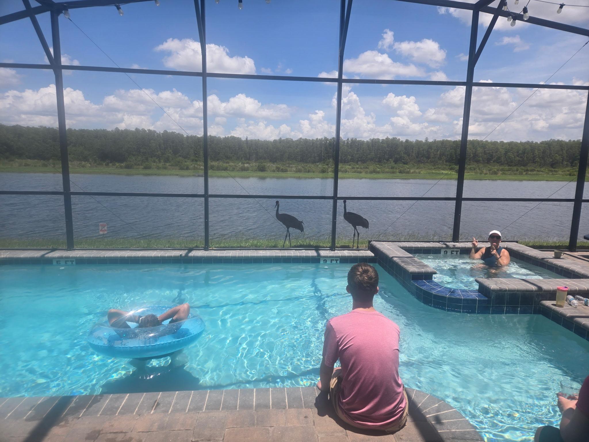 The patio features high quality outdoor furniture — An 8 person dining set and a ultra comfortable deep seating conversation patio set with 2 swivel chairs. We even provide a Bluetooth outdoor speaker so you can play your favorite tunes on deck! Have a seat, relax, and enjoy a beautiful Floridian sunset!