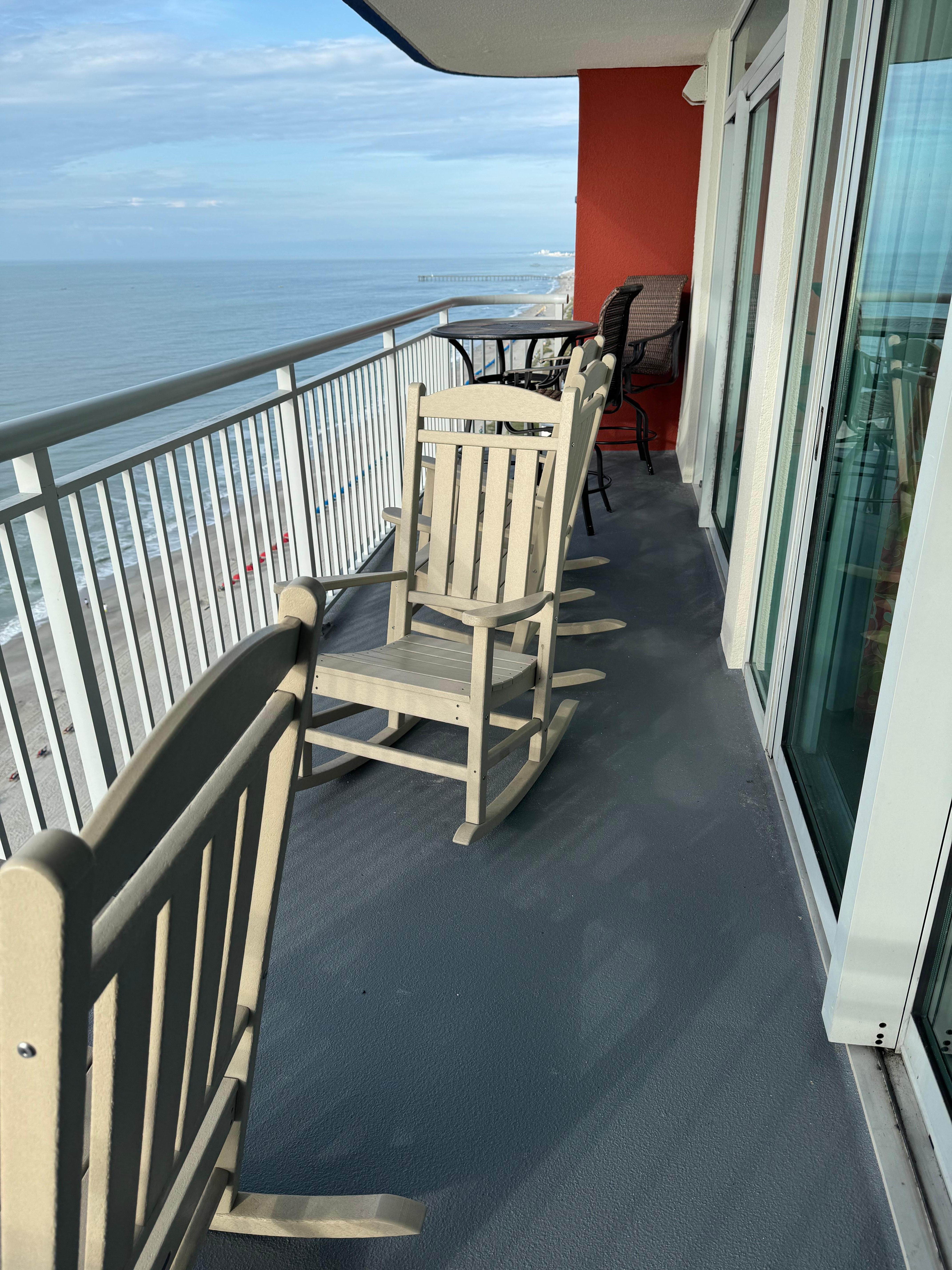 * Four rocking chairs on the 24' balcony (replaced wood rockers with weatherproof rockers 2/2023)