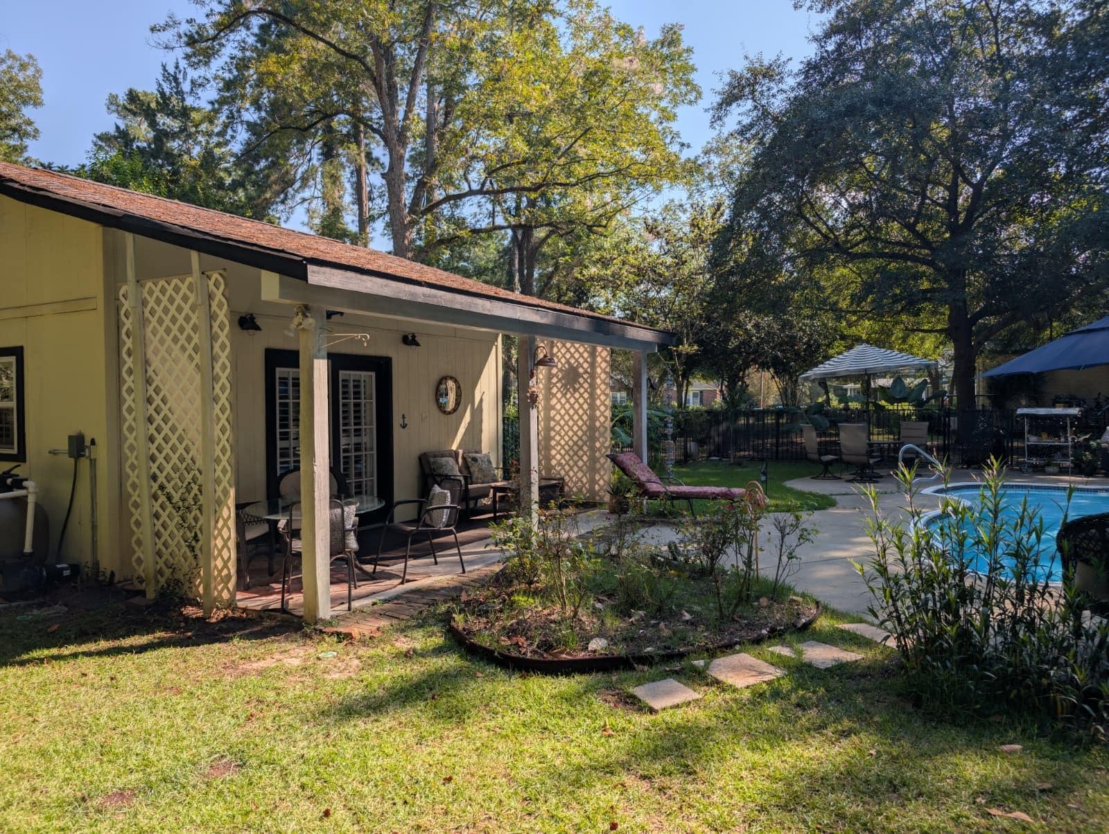 The place is perfect and so very comfortable! It was a perfect find for a stay heading south to FL. Charming yard, gardens, pool perfect little house and the fenced in yard was fabulous for us! Thank you!!