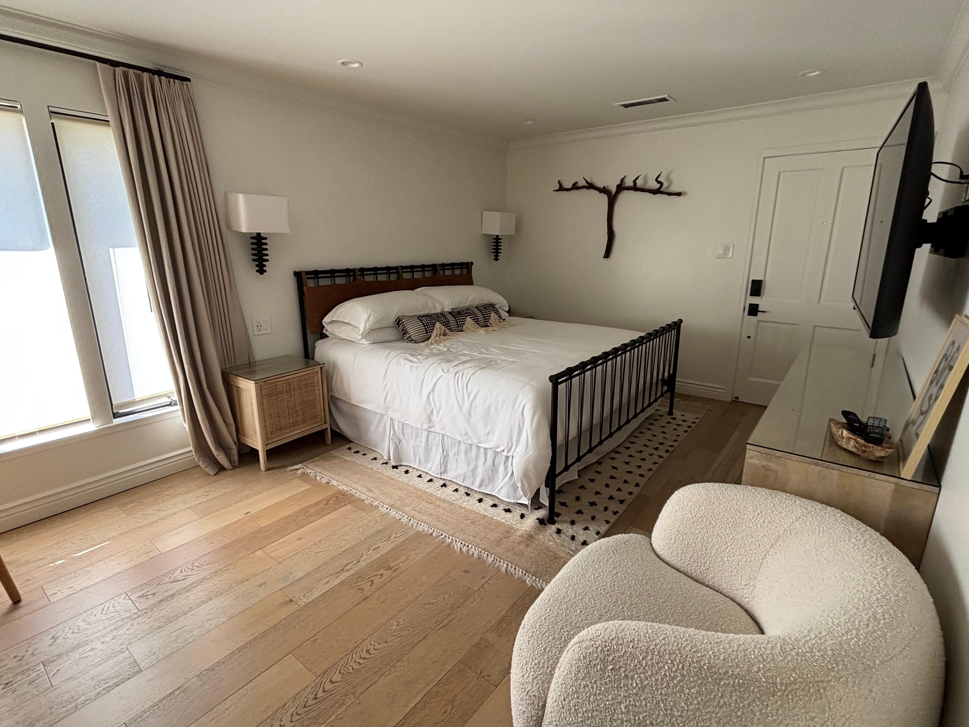 Choose the Guest Bedroom and access similar luxe offerings of a soft king bed with ensuite bath, sumptuous bedding, smart TV, and plenty of storage in closet and dresser. Jumpstart your morning in this room using the fully-stocked in-room coffee station.
