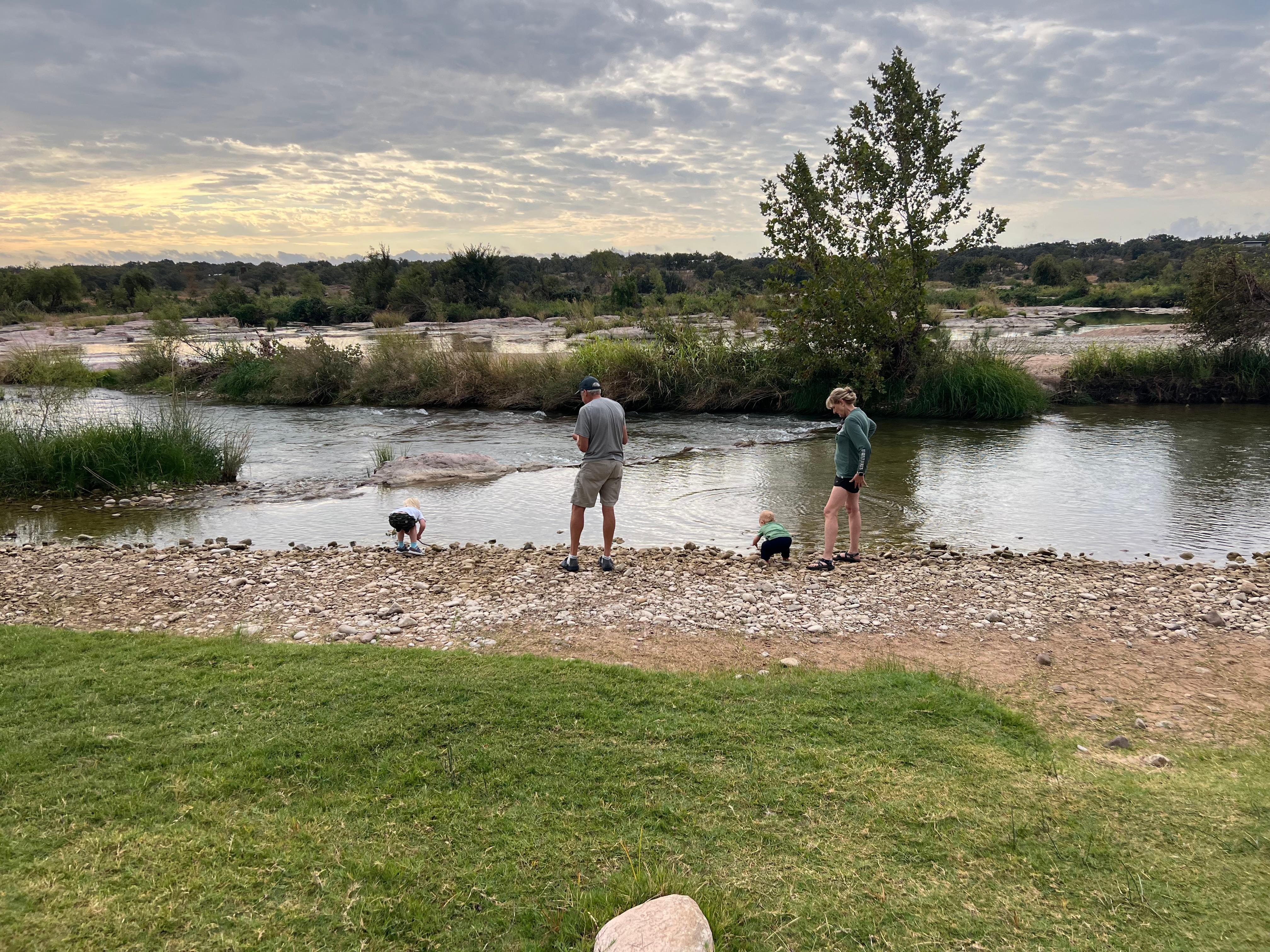We’re located on the banks of the clear and cool Llano river with over one hundred feet of private access. The Llano River, at our location, is over 100 yards wide and offers endless opportunities to roam and explore, either by kayak (we offer two adult kayaks and three child kayaks) or by foot. At the edge of our property is a small but fast-flowing fork of the river that is knee-deep to thigh-deep depending upon the time of year. It’s roughly thirty feet wide. This fork is an awesome spot to plant our river chairs and sit back and relax or watch your little-people play in the water and throw the rocks.