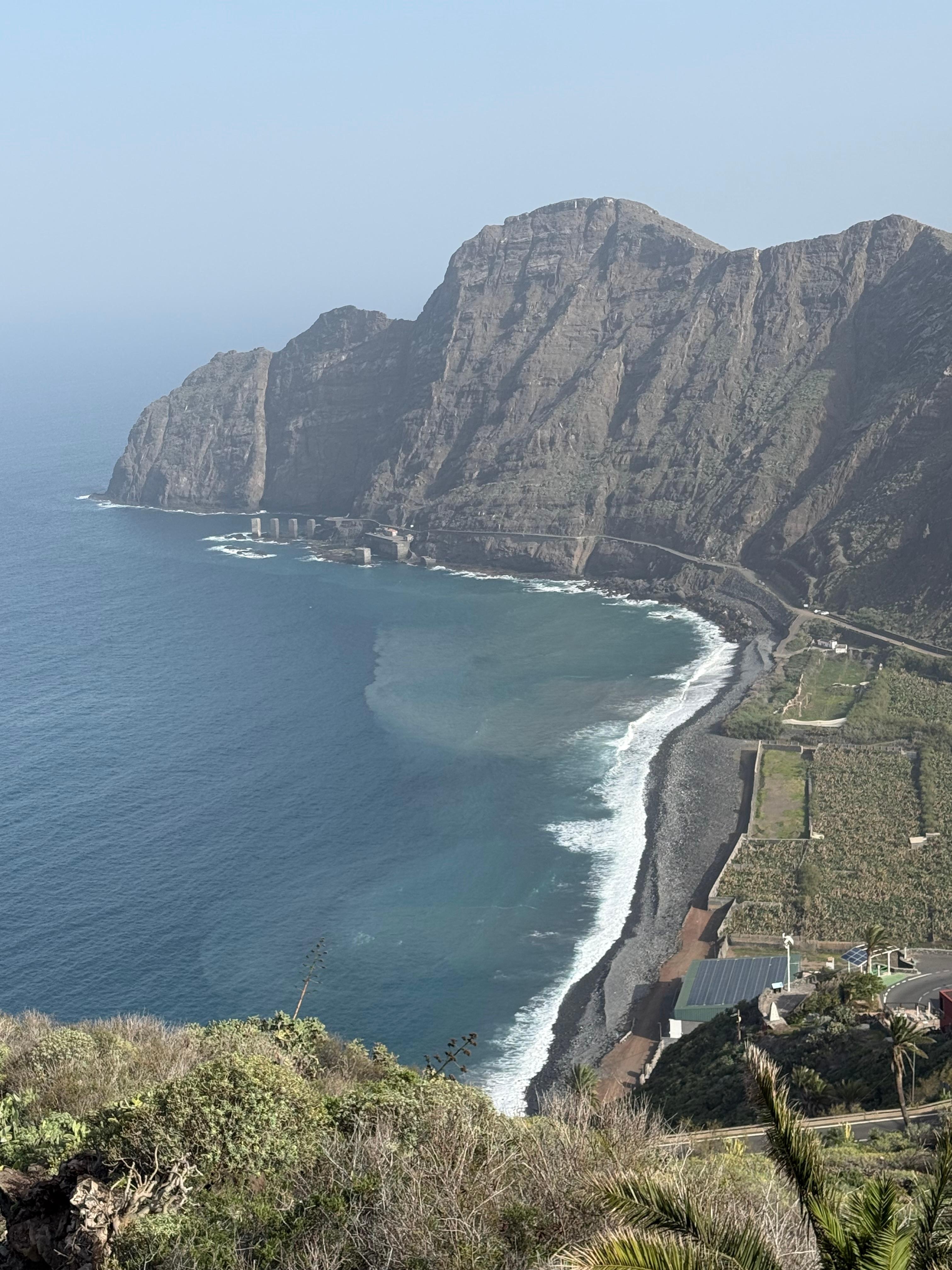 There is a terrace in front of the house, which is partially covered by a wooden pergola. It offers pleasant shade and from the seating area you can enjoy the impressive view of the green valley of Hermigua, the sea and the neighboring island of Tenerife and the Teide summit. We also offer loungers that invite you to sunbathe. The house is in a very quiet location and is an ideal starting point for hiking. It is located on the slope about 1 km from the main road.