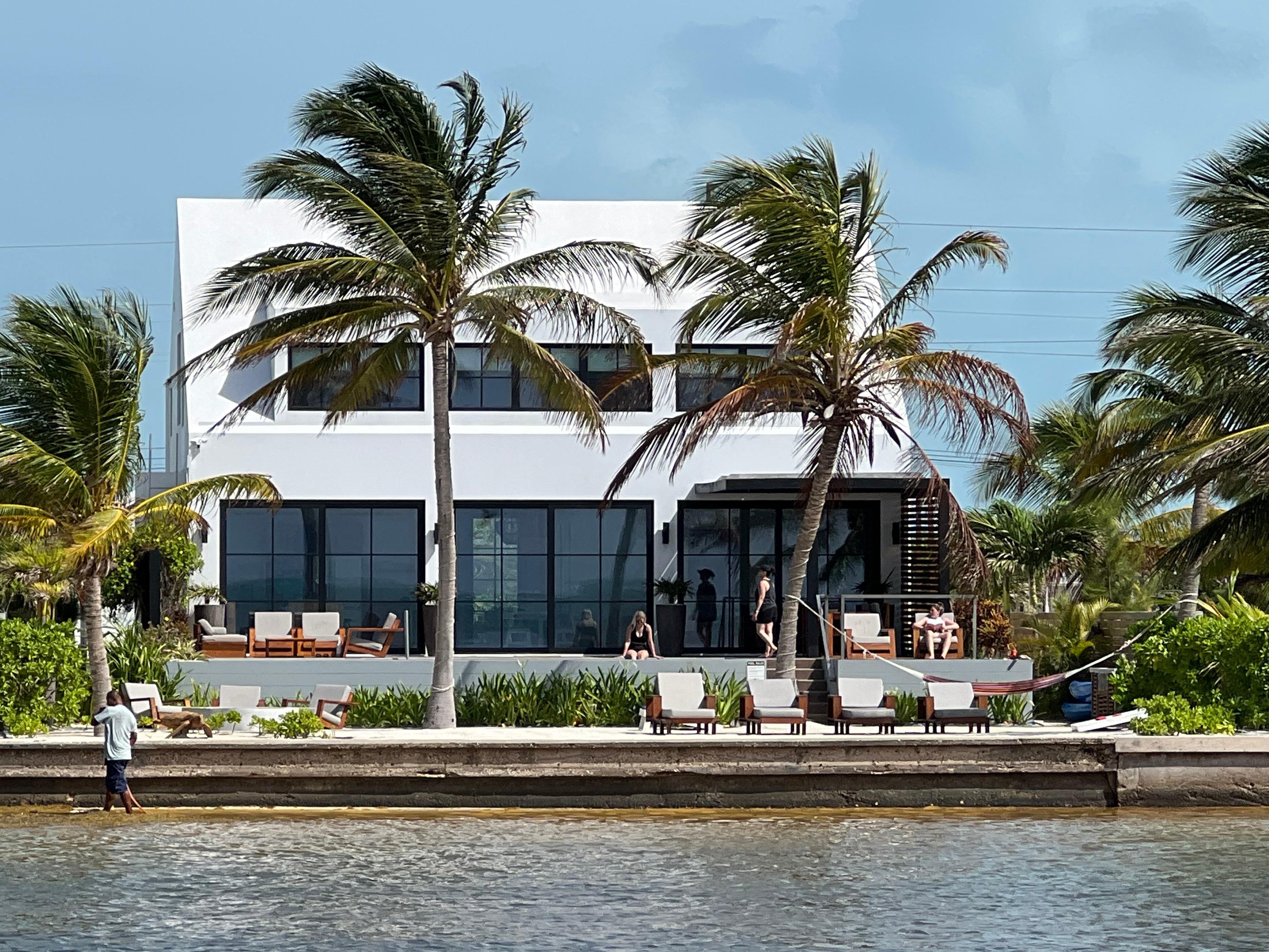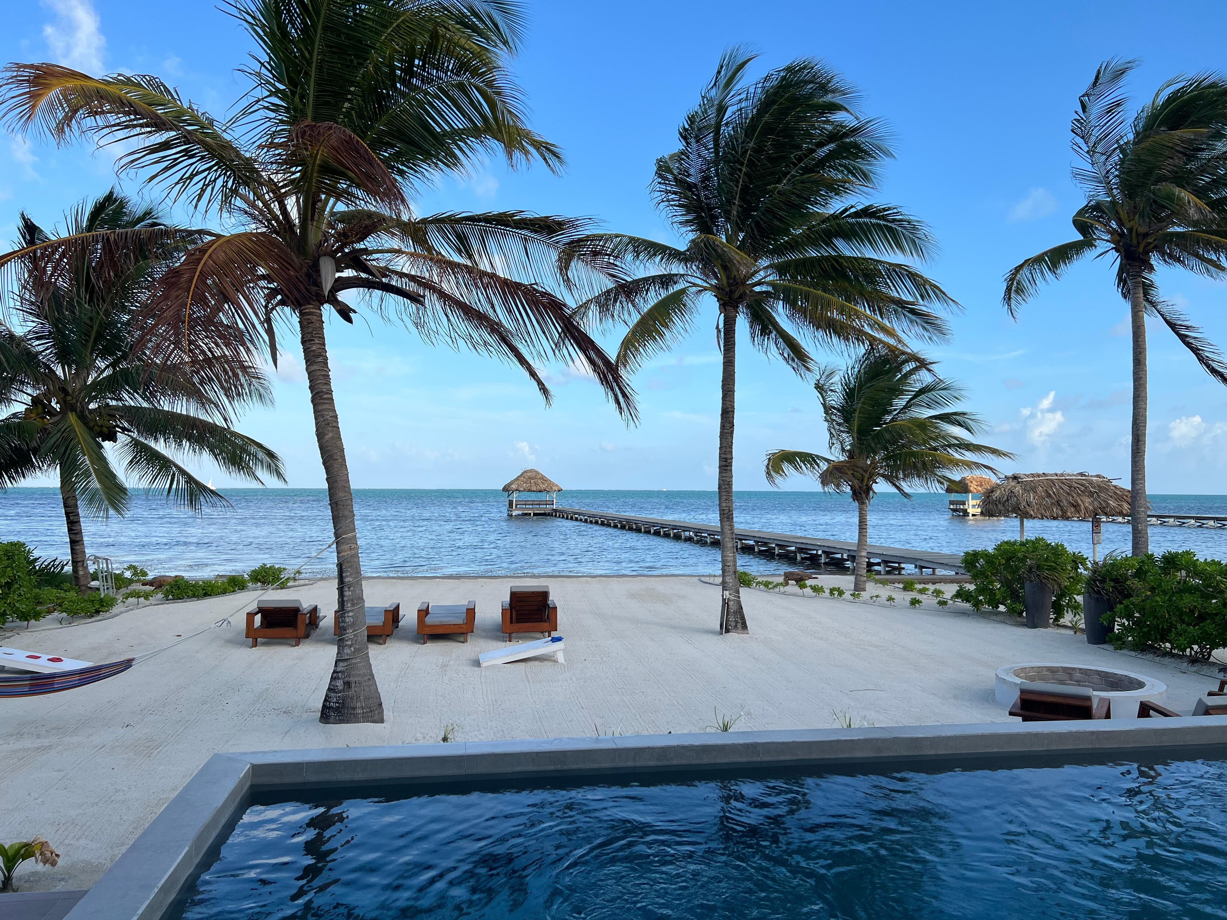 Wilson Point is a gorgeous beachfront home with everything to ensure you have a great island vacation: private pool, gym, beautiful well-stocked kitchen, huge ‘great room’, four bedrooms (each with en suite bath), housekeeping, kayaks, ping pong, fire pit, & more! Located in a residential area 3.5 miles south of San Pedro, you are close enough to town yet can have quiet, peaceful evenings at home. This is a great spot for families & low key vacations with friends.