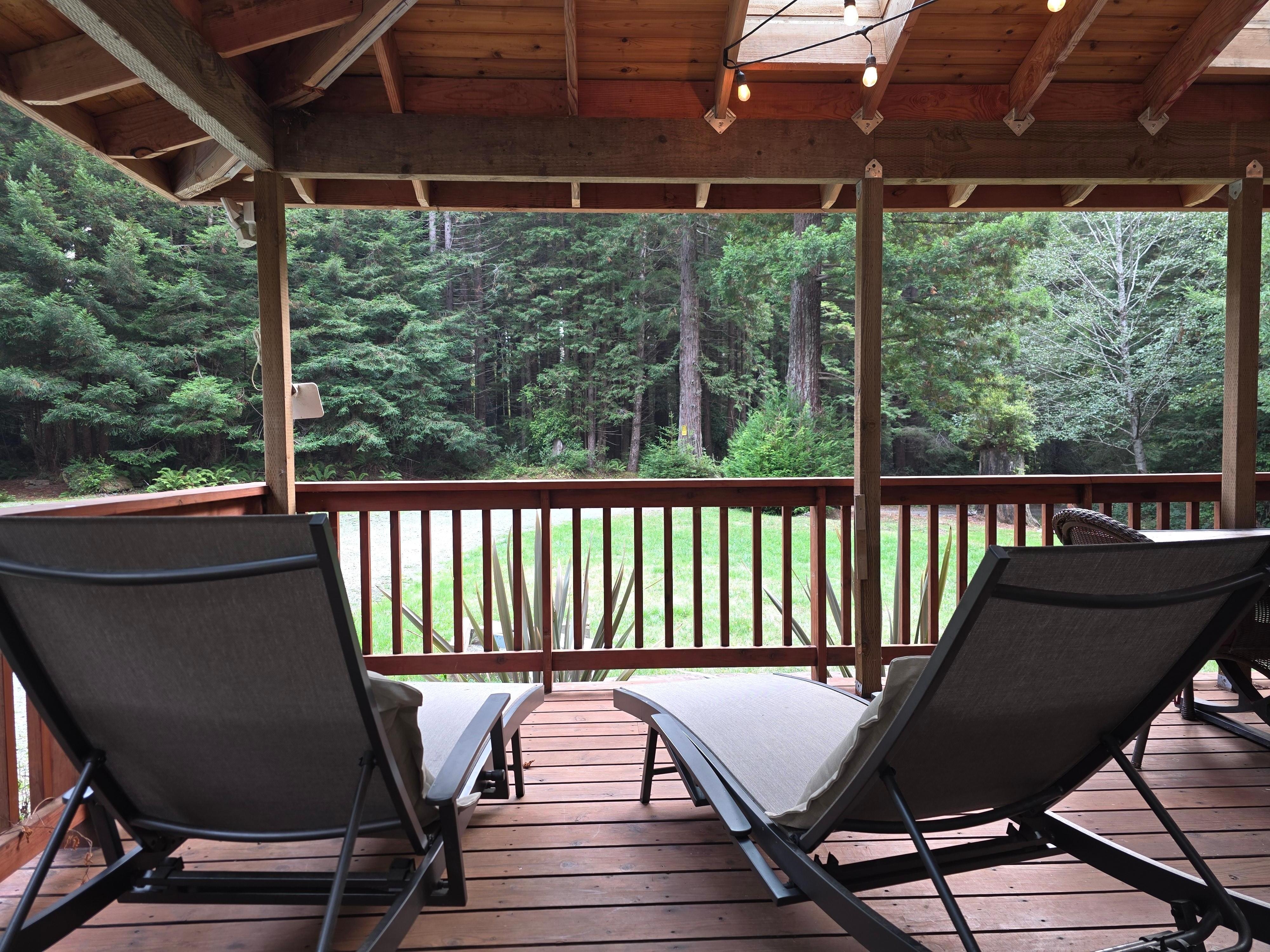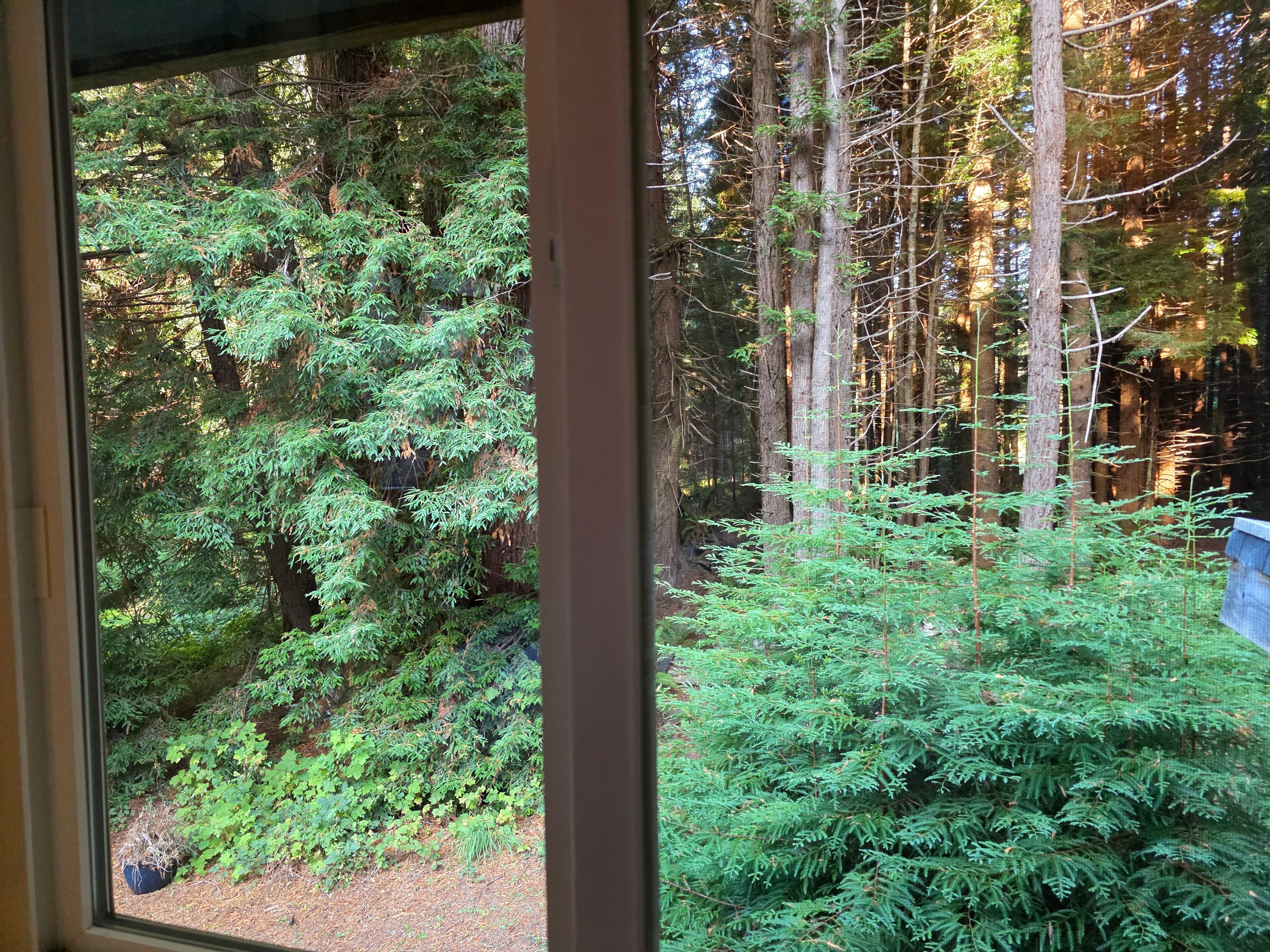 The photos give you a great sense of the home and the beautiful outdoors surrounding it. The first floor has the Living Room w/ Full Sofa bed, Bathroom with Gorgeous Shower, Open Kitchen and Dining Area. The Dining Area has a 4 person table and a separate two person table that you can put next to each other to seat 6. Then upstairs you have a King bed and another bathroom with a shower. Then there is a ladder above the sleeping area going up to an open loft with a queen bed and nice office space, of course with beautiful Redwood Forest views to absorb... We have decent wi-fi through Star-link that allows for streaming and some video calling. Wifi speed (76.2 Mbps download 9.62 Mbps upload) Please note, the house is equipped with two exterior security cameras in the driveway.