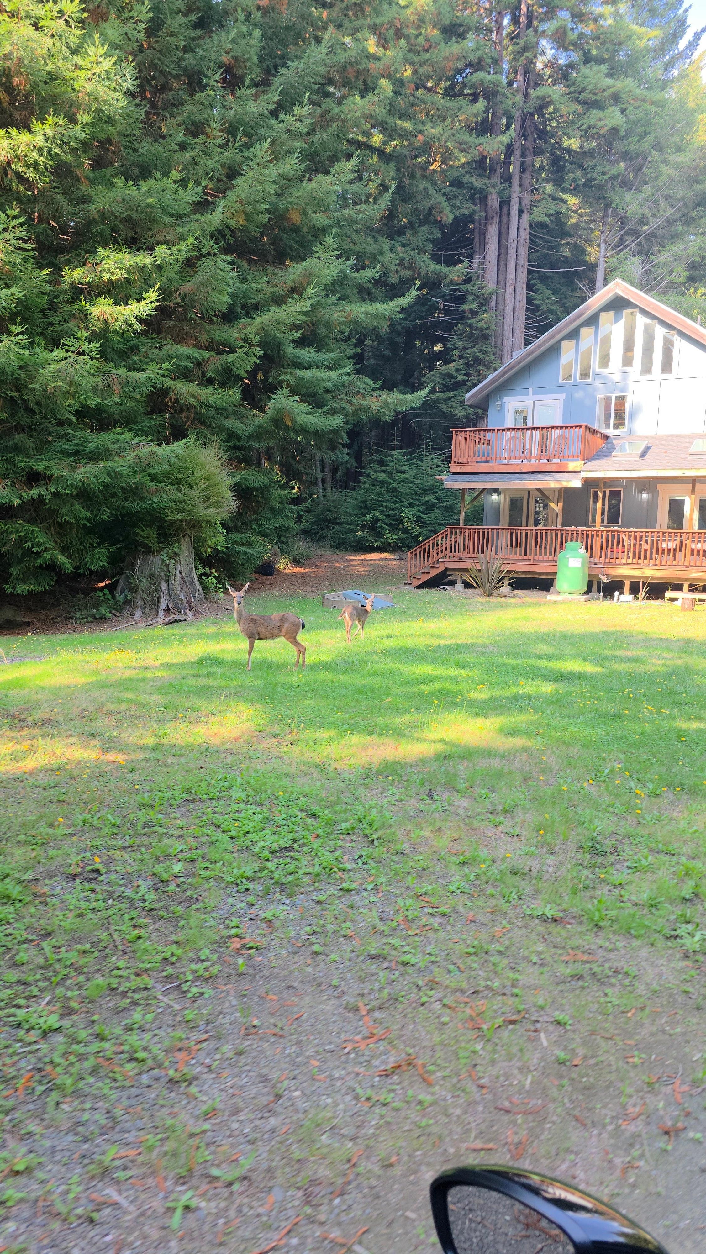 Lots of beautiful outdoors spaces for you to enjoy, including sitting in the 5 person hot tub on the deck and looking at the stars in the evening, or playing horseshoes in the yard... And you are only 20 minutes from the Prairie Creek Redwoods State Parks with the hundreds of miles of Redwood, Coastal and Creek trails.