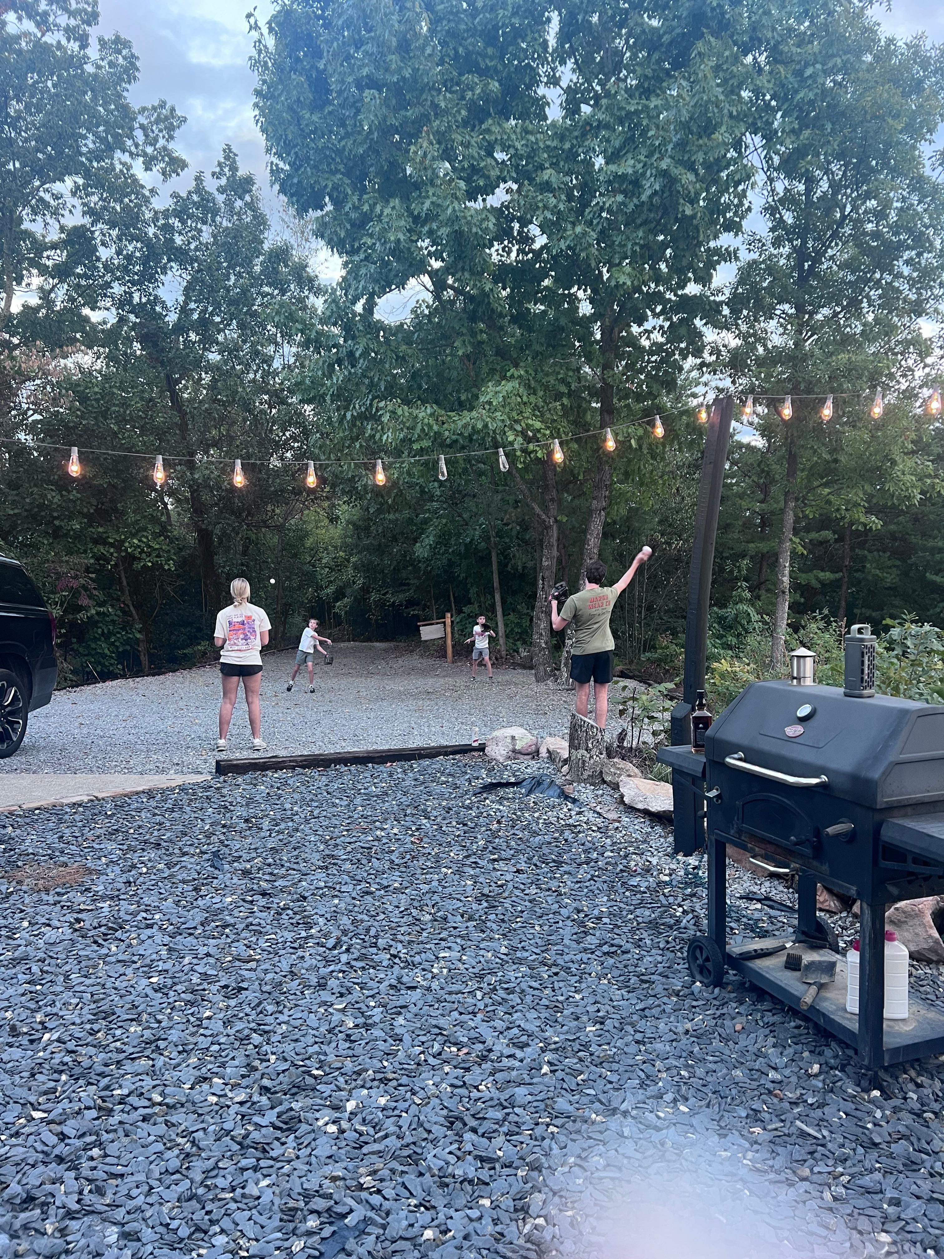 Outdoor living is a pleasure at Overlook Ridge. The front covered porch offers a 4-person bistro dining table and a comfy West Elm outdoor sofa with a chaise lounge, perfect for that afternoon nap. The views from this porch are breathtaking, overlooking the valley and rolling hills. The side covered porch is where you will find the 4-person Hot Tub + two cozy seating areas, including fun and comfy egg chairs! Here you will be able to enjoy the views to both sides, while getting a sense of being tucked back into the trees as well. You may even spot a bear walking along the ridge line, too. The outdoor living does not stop here though! Head to the backyard where you can tell stories and make memories around the propane fire pit with Adirondack seating for 6. Or, play a round of corn hole with the provided boards while whipping up some dinner at the charcoal grill.