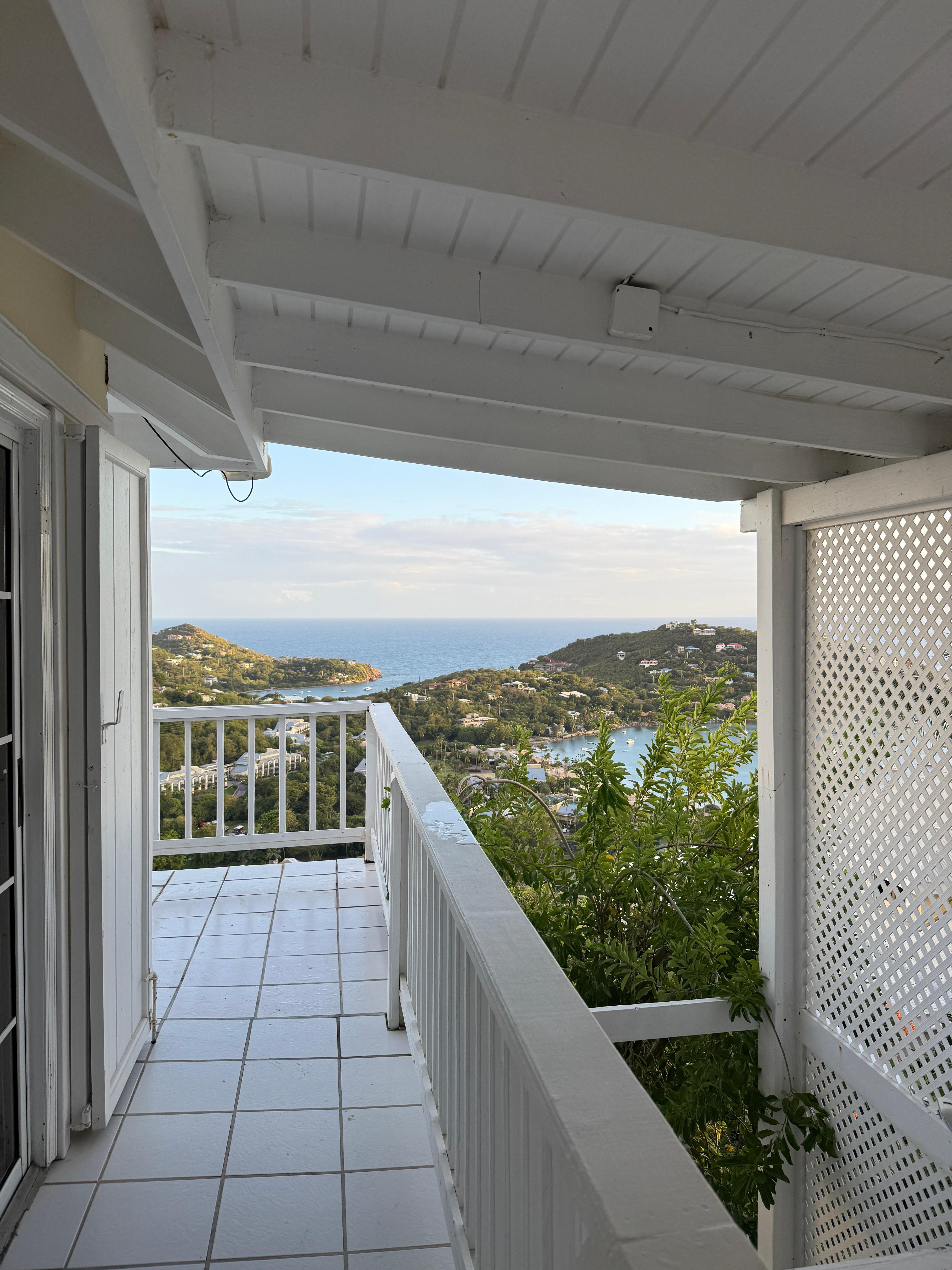 Fabulous views to the southeast over Cruz Bay from bedroom deck and lower, main floor deck. Is fairly high up mountain. All amenities, appliances worked well, except mosquito screens, some of which don't actually close inside from outside at screen rollers. May be the best bedroom for sleeping I've ever encountered. Landlord was very nice, helpful and friendly, a great welcome to St. John's. Would stay there again, next time.