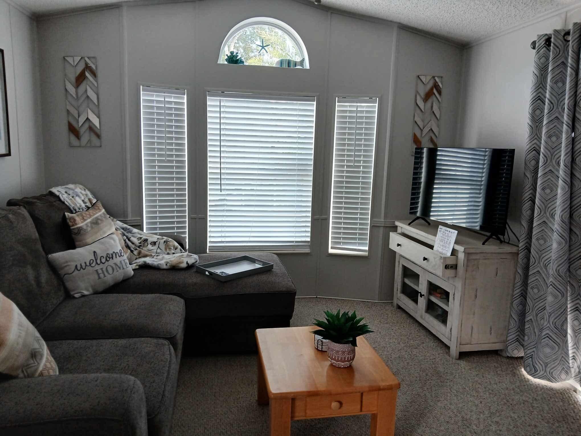 This waterfront cottage is nestled in Orange City RV Resort. This quaint little community is beautifully kept, and provides an atmosphere that says Vacation! Our home has a lovely view of a pond with a fountain (sorry - no swimming or fishing allowed, but you can enjoy feeding the turtles from the neighborhood dock!). We are just a 4 minute walk to the community pool (heated in the winter!) and hot tub. Our guests will also have access to the workout facilities, playground, horseshoes and shuffleboard.