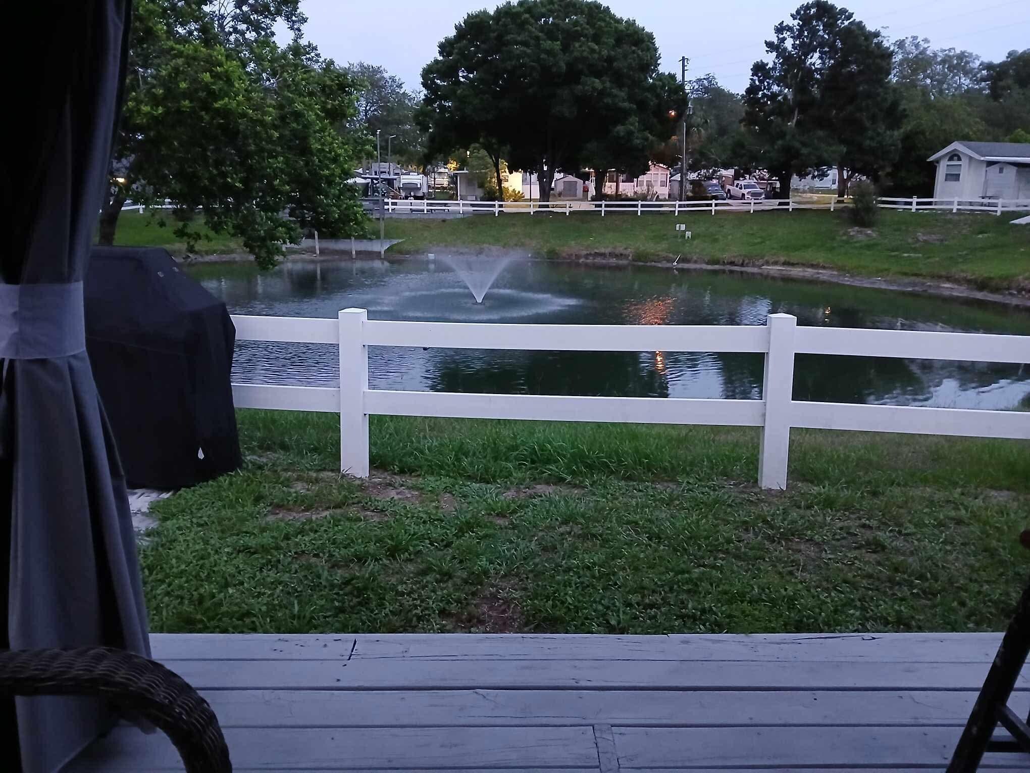 Relaxing on a .small lake with a fountain is as good as it gets. the pool is a 5 minute walk and open until 10 for a refreshing evening dip! safe to take an evening stroll around the park after dinner or just sit on the oversized sofa and watch movies.