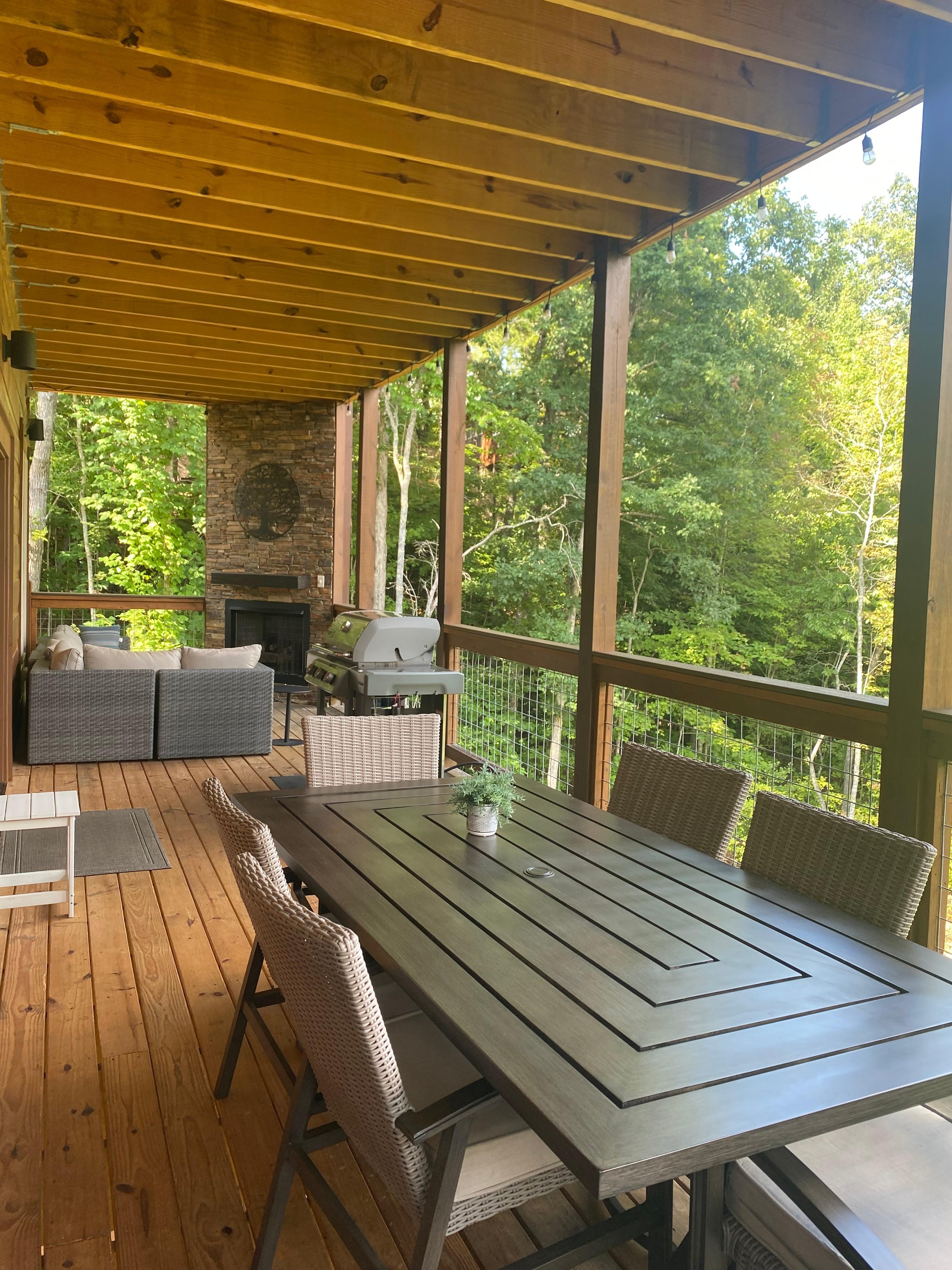 * It has 3 HUGE decks in the back that jettison out 10 feet from the back doors providing 1200 square feet of space to take in the views, cuddle by the outdoor fireplace and relax while you soak in a hot tub.