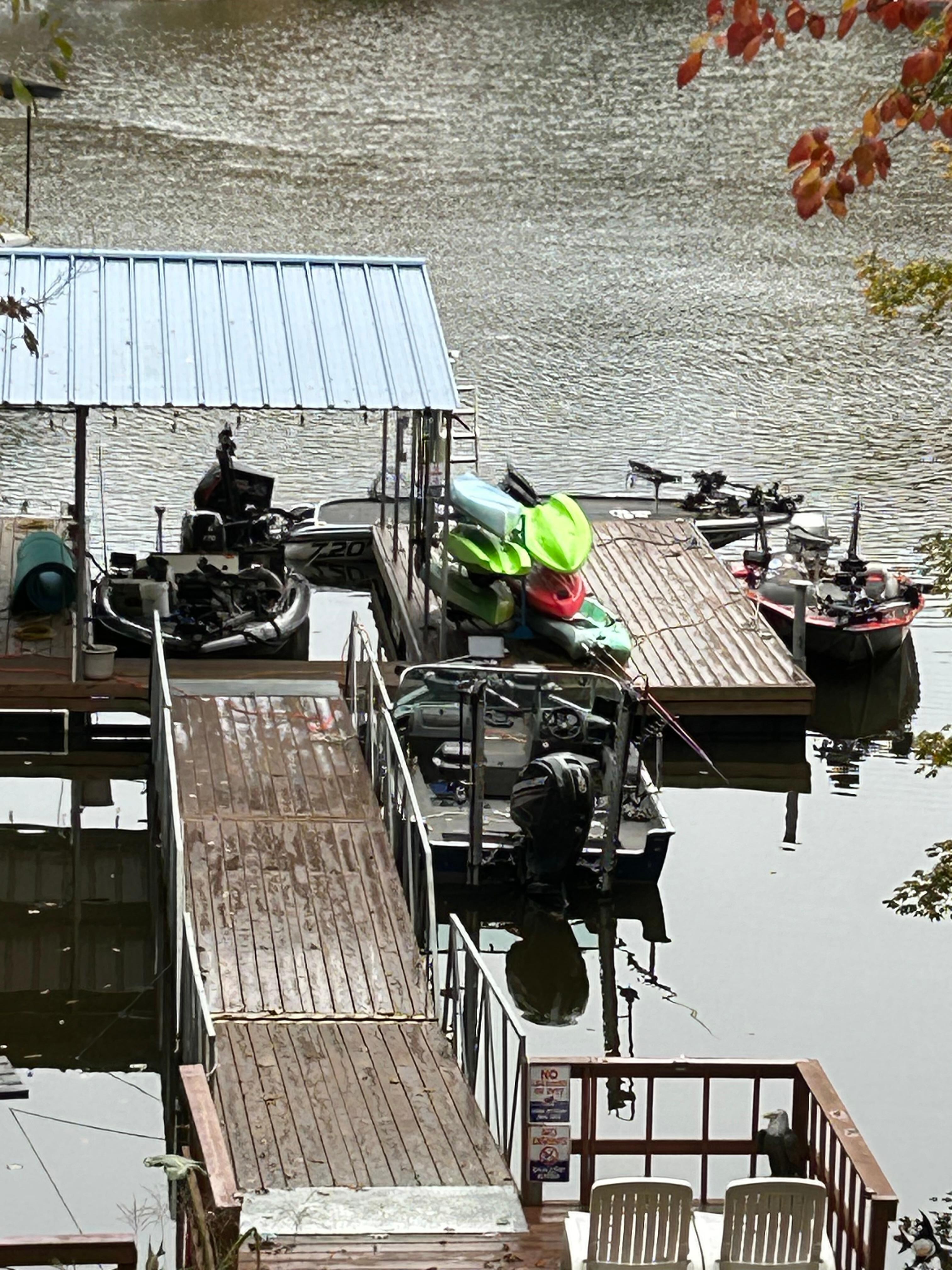 Outdoor activities abound with a new custom private boat dock with huge swim deck, ladder, covered tables and seating area, full fish cleaning station, electric, lights, and fans on a quiet No Wake Cove near ski area. The Chalet's private dock has an available open slip to bring your own boat (at no additional charge) swimming, fishing, use of paddle board, canoe, kayaks and lily pad float.(No jumping on Lilly pad) (** BRING YOUR OWN PERSONAL FLOTATION DEVICES AS THEY ARE NOT PROVIDED, NO DIVING & NO LIFEGUARD on Duty**). Enjoy the newly expanded outdoor fire-pit with large seating area and complimentary use of hot dog roasting sticks and pudgy pie makers. Firewood available for purchase and flame clicker is provided. Due to conservation, erosion control and neighboring properties, wood gathering is strictly prohibited.