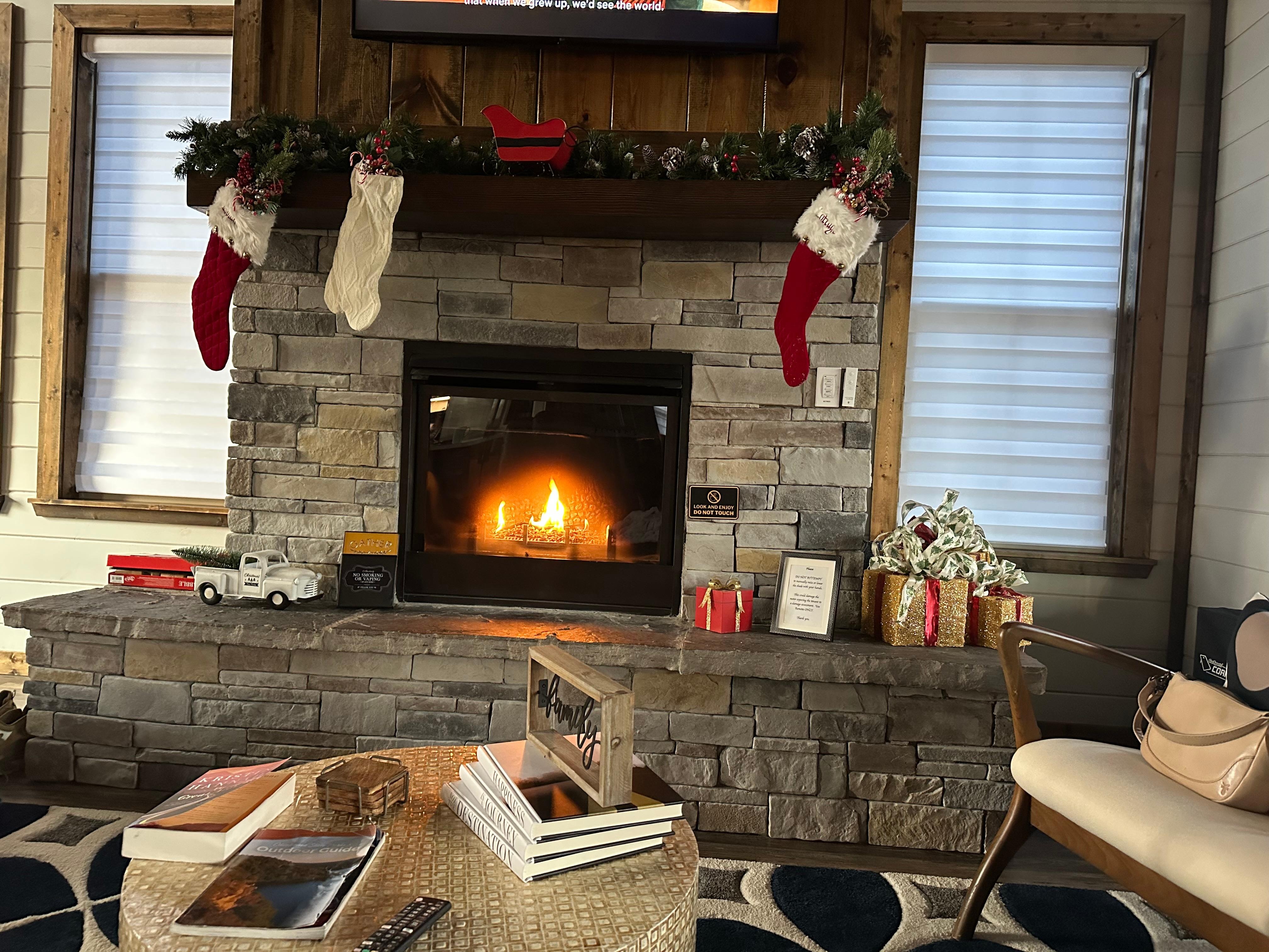 Entering the front door, you will find the open living area and kitchen decorated in an upscale ranch style with leather furniture and beautiful blue and chocolate brown tones throughout. You and your honey (with or without the kiddos) can truly spend quality time together in front of the stone fireplace, watching movies on the 55" TV and playing games. NOTE: Our TVs are Smart TVs so that you can log in with your account and watch your shows via your favorite apps.