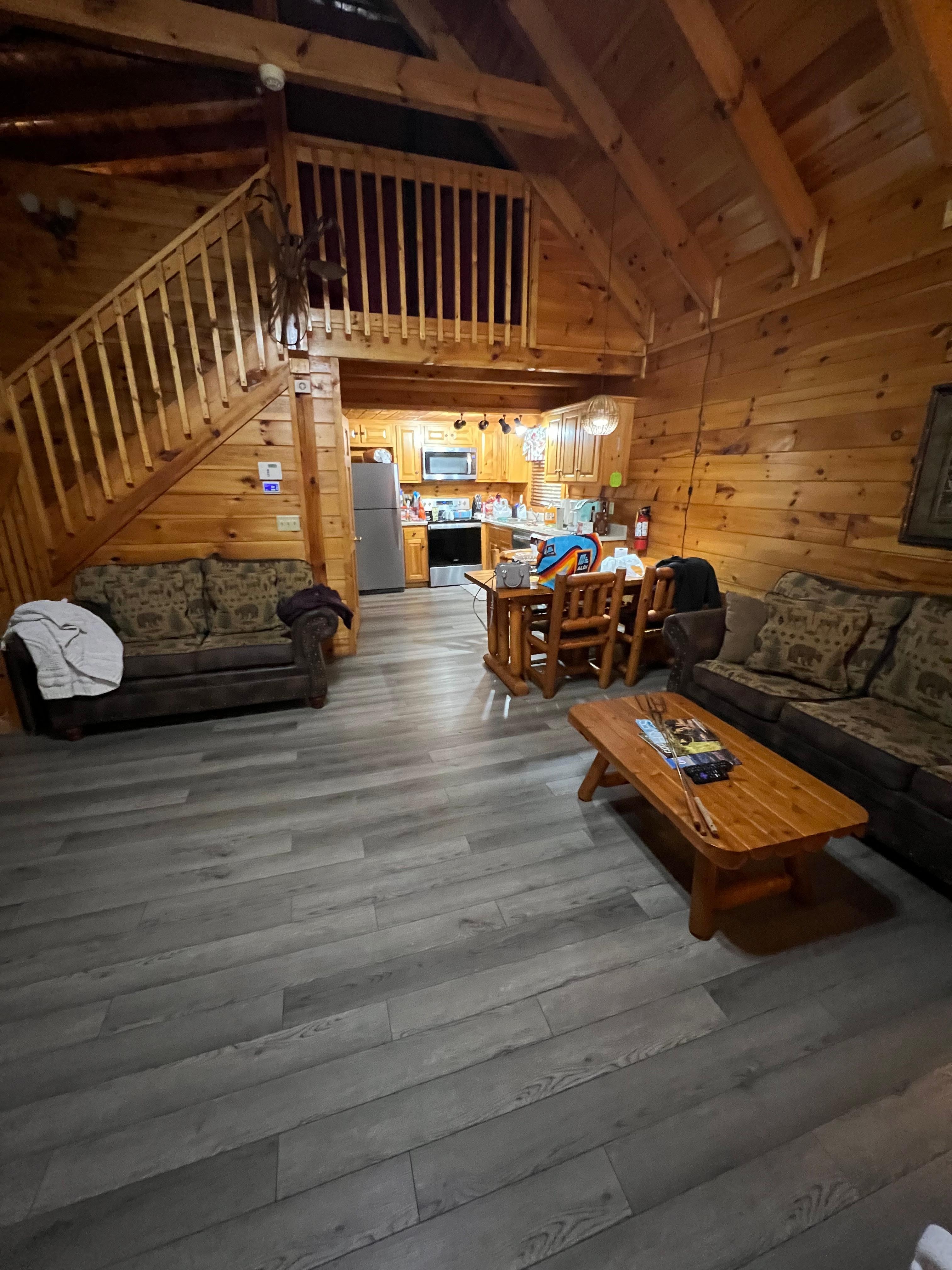 HONEY BEAR is a stunning, authentic, PET FRIENDLY log cabin in PIGEON FORGE, TENNESSEE with sleeping for up to 8 guests! With three bedrooms and three baths, you’ll have plenty of room for that big family trip to Dollywood, or that fun mountain getaway with friends.