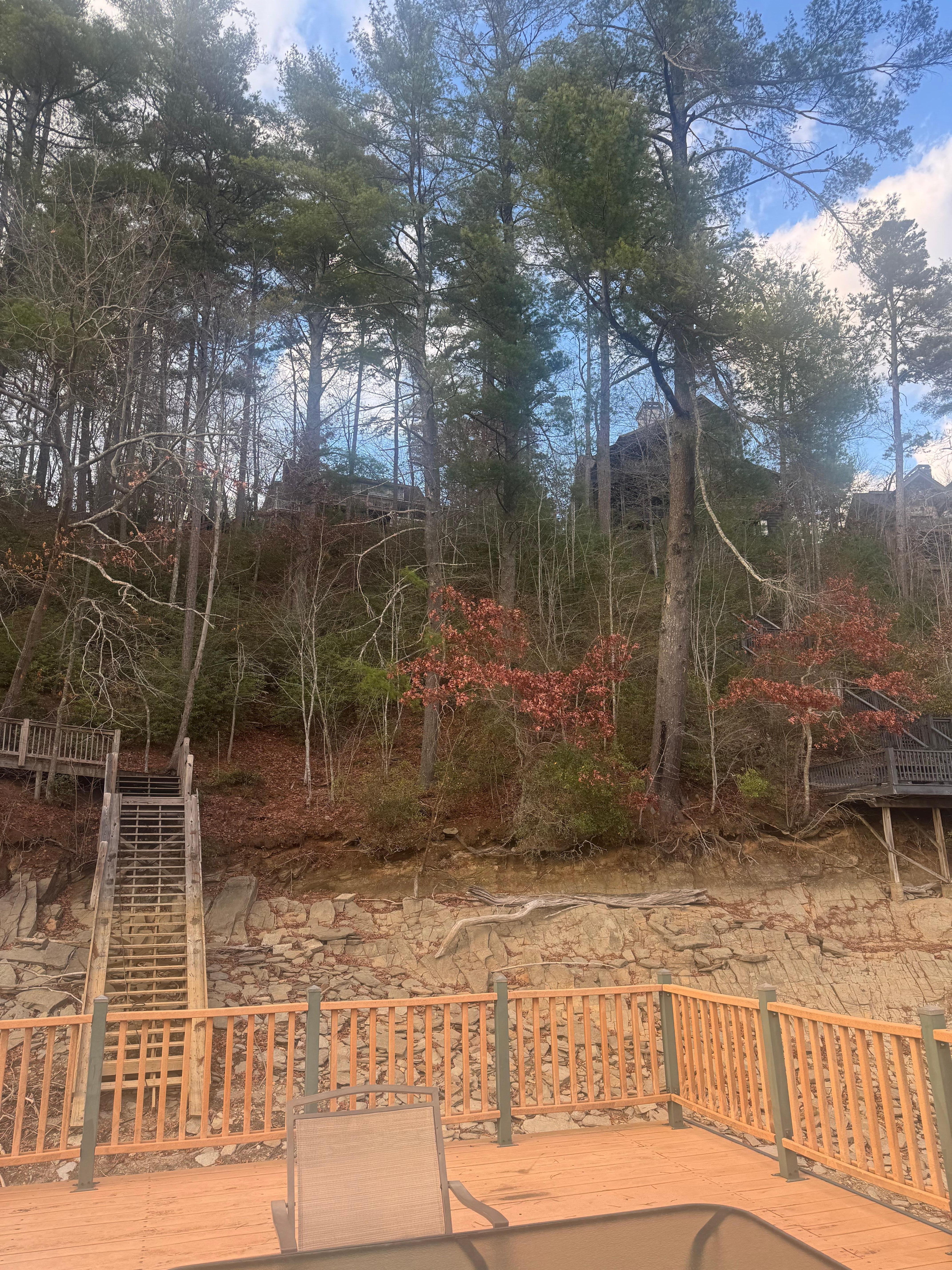 Dock details: There is an electric lift from the deck area that goes down to dock. Guests can use the Morganton Boat Ramp to put their boat in the water and may use to the side of the dock to secure the boat.