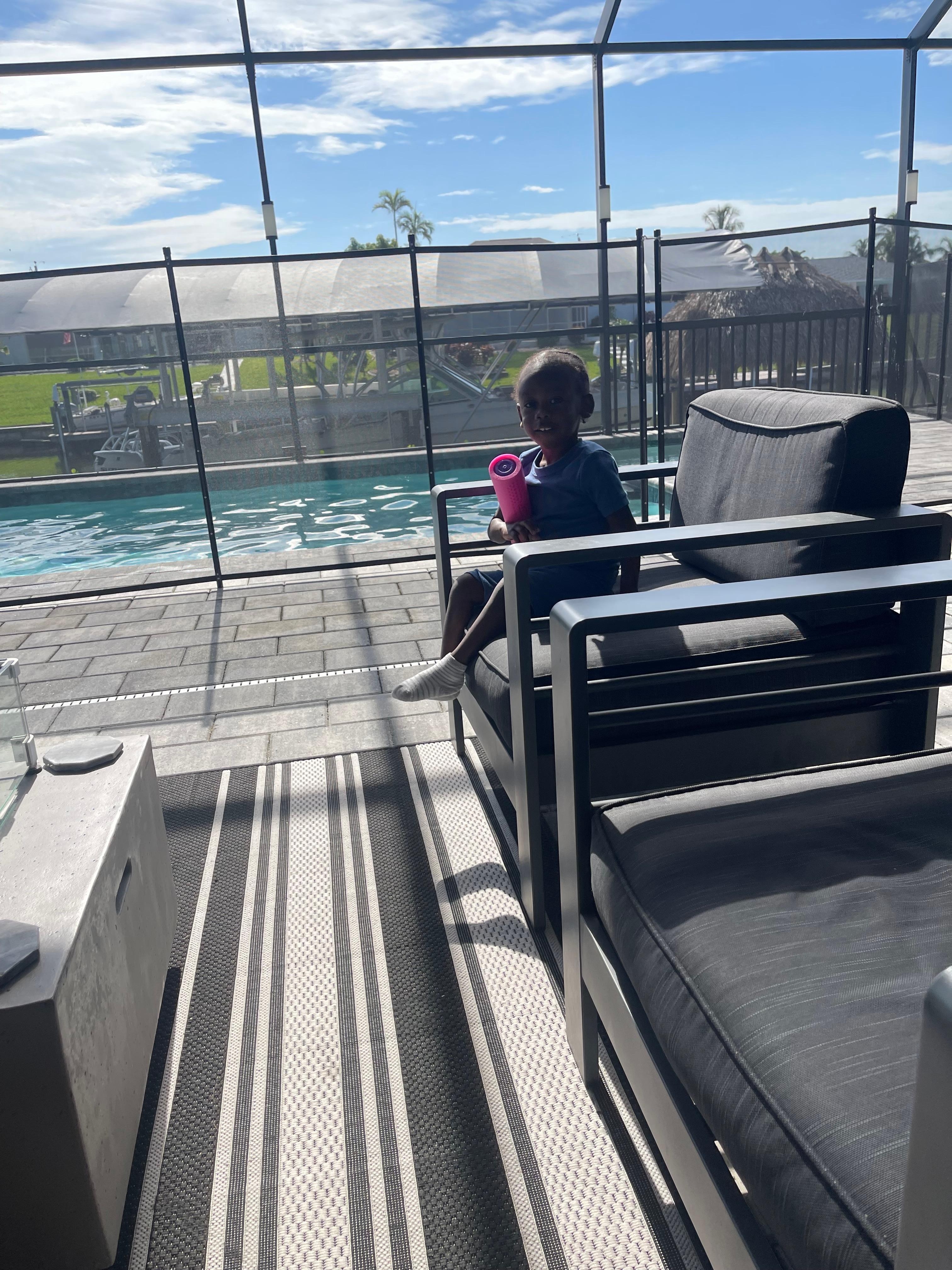 The best part of this home, however, is the outdoor living space. Situated under the screened in lanai, there is a heated pool and hot tub, large seating area with fire table and two lounging chairs for sun bathing. Have some fun on our brand new dock with a tiki hut!