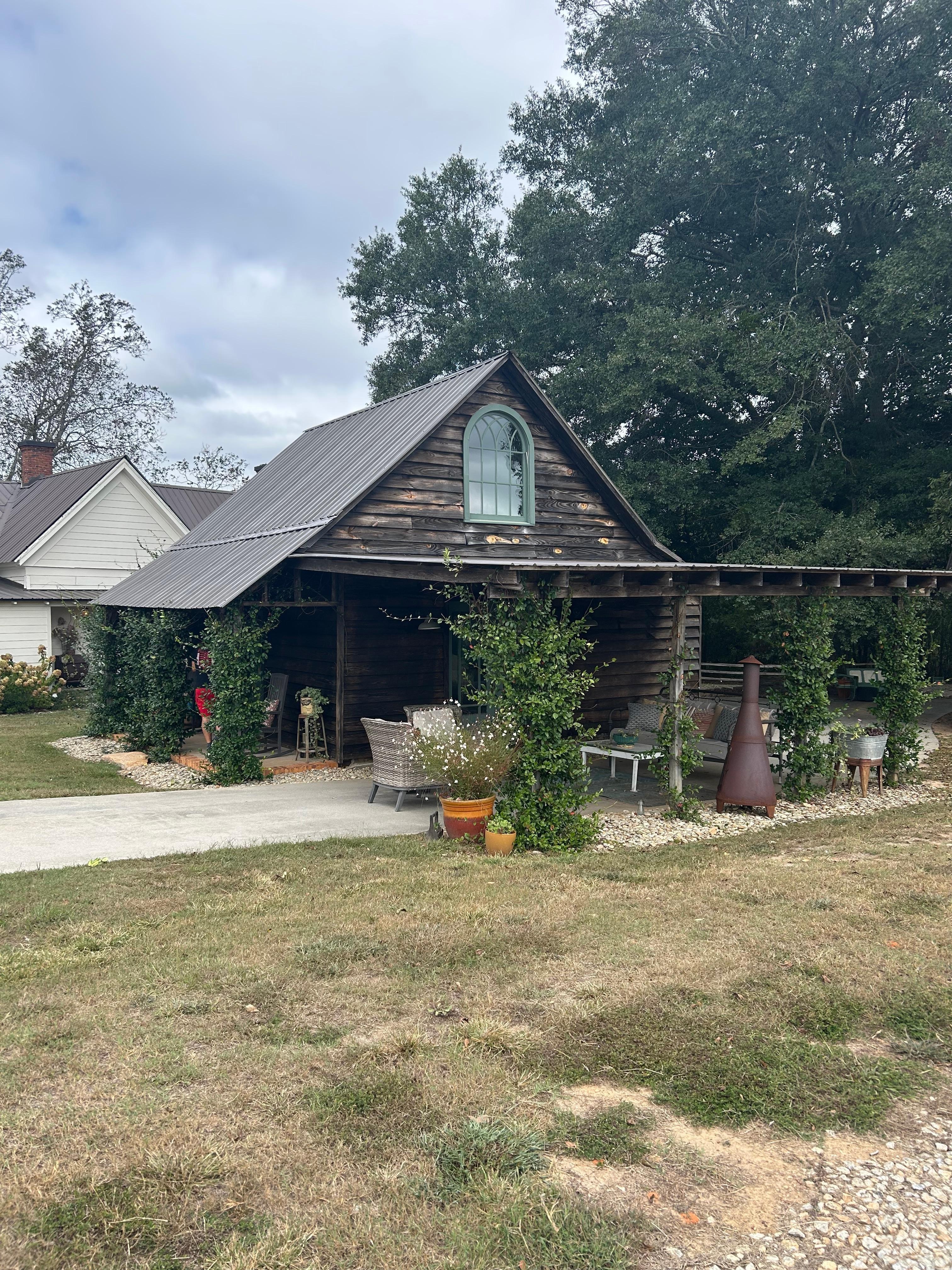 Home was originally built in the 1800s. In order to make this home liveable we had to completely renovate but in doing this we tried to preserve as much character as possible. Styles chosen throughout where common in late 1800s to early 1900s. All interior wood is reclaimed and wood walls come from a old cotton mill from south Ga. Beside the French doors you can see the original foundation beams used when the house was built, notice the axe marks. You’ll notice the well (covered/secured) on the back porch and you’ll see the smoke house behind the property. Doors are original to home and you’ll see the rocks that served as the homes foundation for more than a century. This home does not have a dishwasher or washer/ dryer but has all other modern comforts to help your stay be enjoyable.