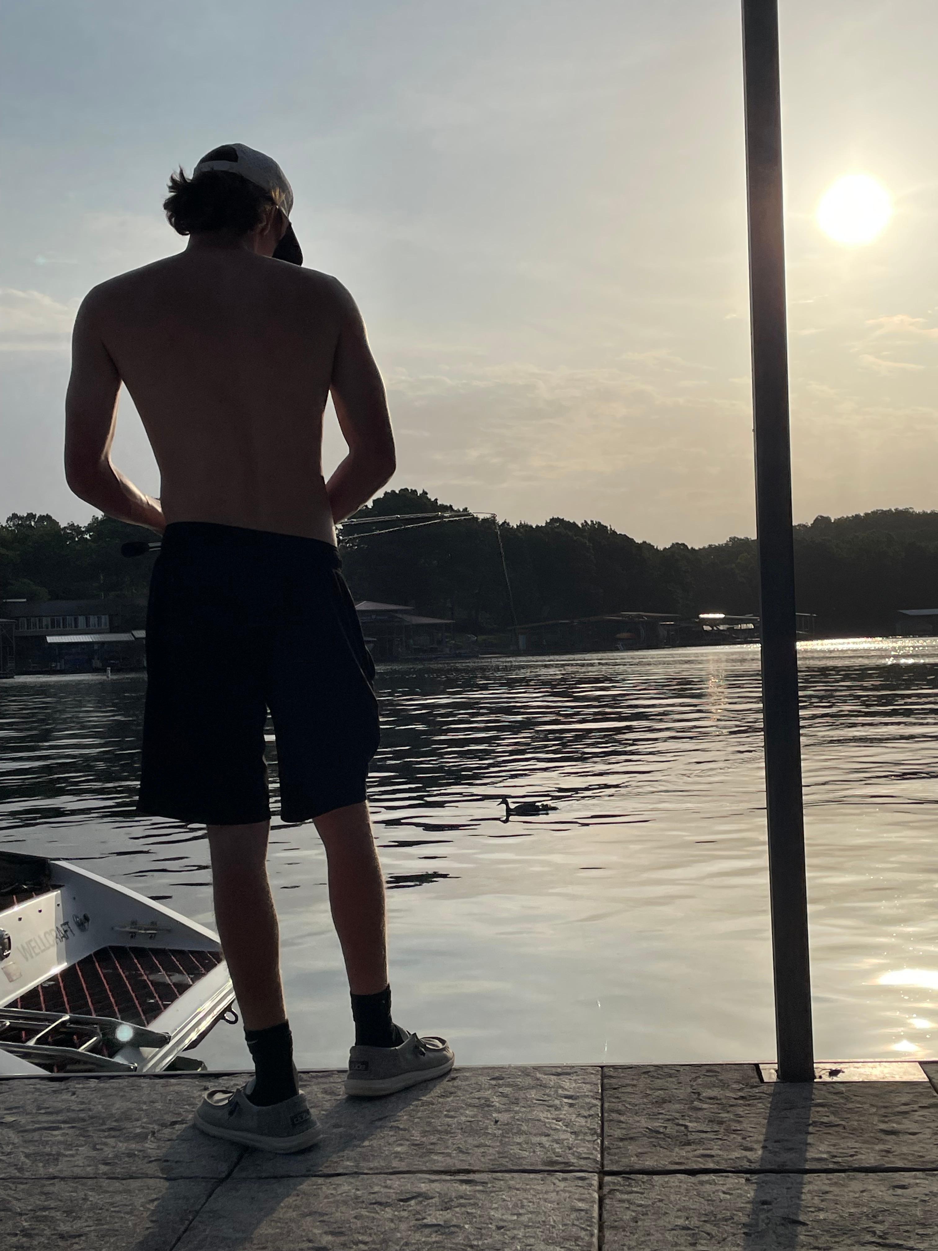 This lakefront cabin has the ultimate outdoor entertaining setup. Enjoy the flat backyard oasis with views of the main channel & quiet cove. Just steps from the huge private swim dock equipped with a tiki bar, outdoor seating, Roku TV, diving platform, and oscillating ceiling fans.