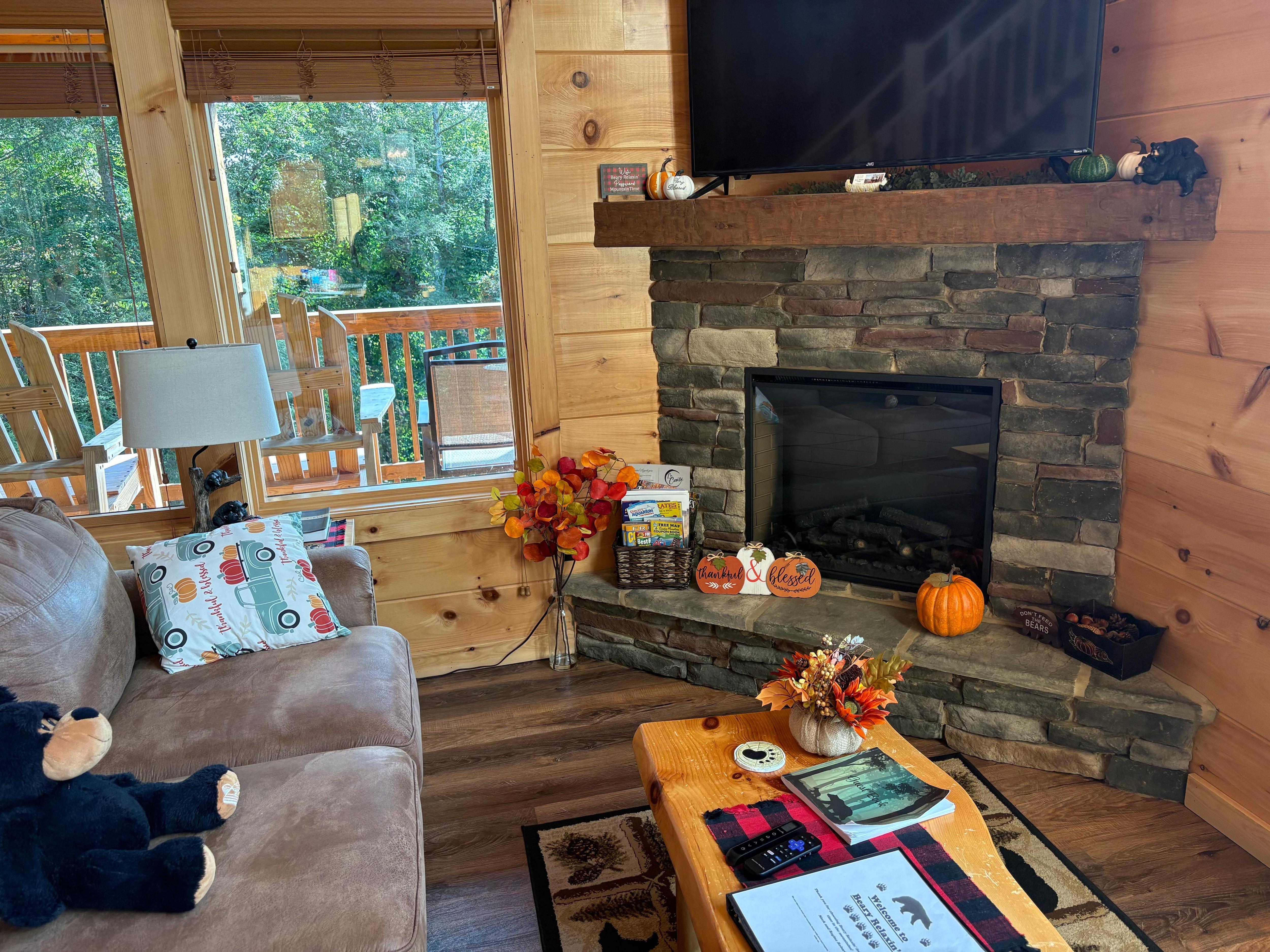 This 2 Bedroom 3 Bath Log Cabin features magnificent views, an open floor plan, cathedral ceilings, flat-screen TVs and a warm fireplace in the main living area. Enjoy amazing views from the main floor deck while relaxing in the swing or Adirondack chairs. Unwind in the 6 person hot tub after a day of hiking, exploring downtown or shopping! Enjoy a game of pool or play 1 of the 66 games on the arcade console game. The Two-story windows and rear deck windows offer spectacular views of the surrounding mountains and flood the house with natural light. We are in an excellent location that is only minutes to Gatlinburg and the National Park yet in a quiet cul-de-sac.