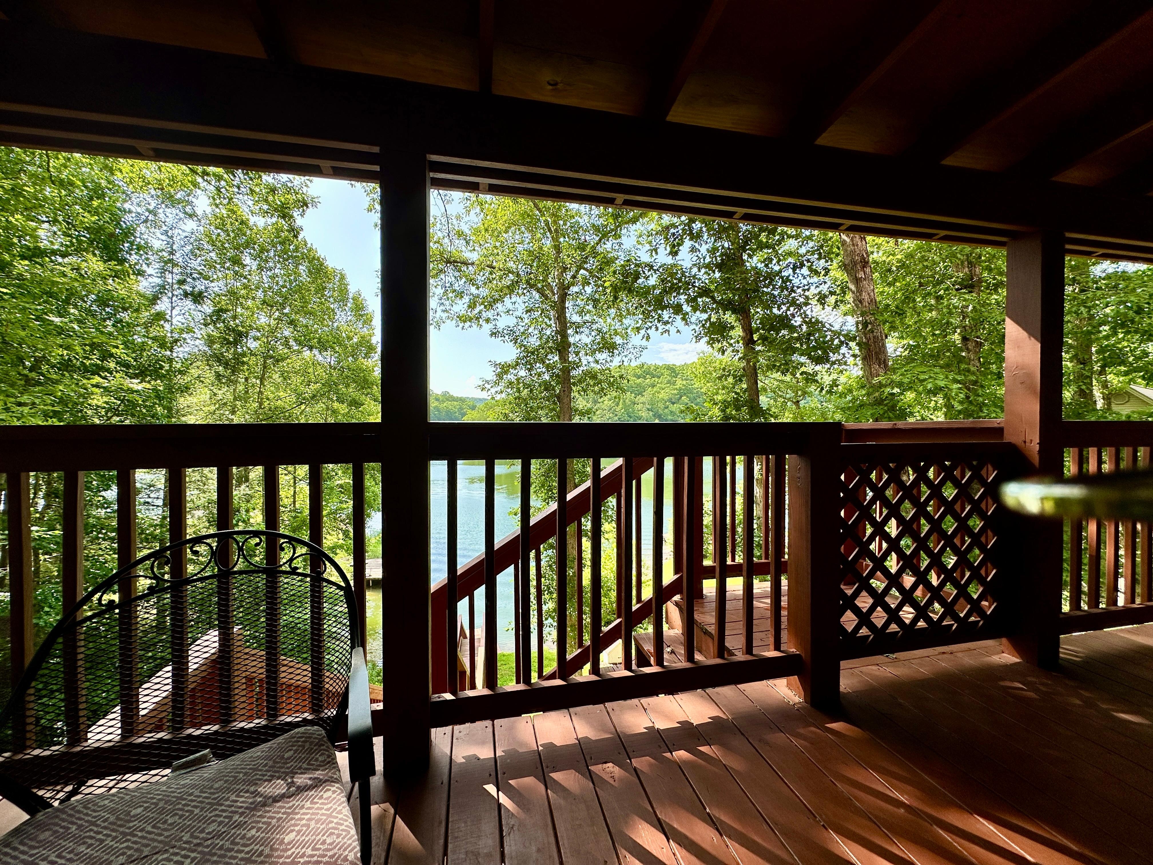 Nestled along the serene shores of Wood Creek Lake in London, Kentucky sits a cozy cabin retreat, surrounded by towering trees and the gentle sounds of nature. The cabin exudes rustic charm, with a spacious wooden deck offering panoramic views of the water as well as a private dock, perfect for fishing or simply lounging in the sun.