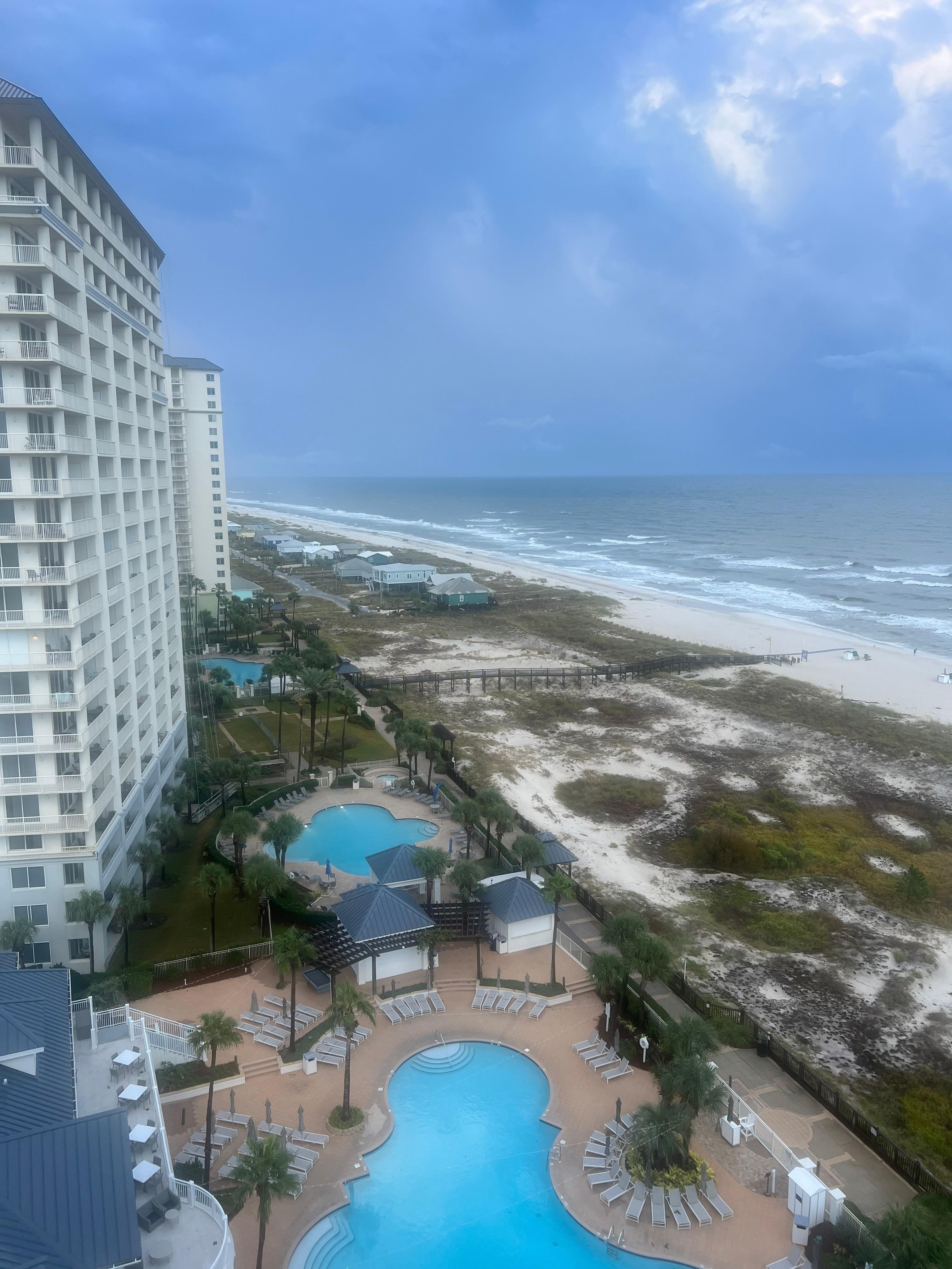 The Beach Club Catalina 1401 is all about the VIEWS! This 4 bedroom/4 bath condo offers magnificent sweeping views of the Gulf of Mexico, the Mobile Bay, the Clubhouse area, and a sugar white sand beach which stretches endlessly down a natural undisturbed area covered with sand dunes and wildlife. The Beach Club is a luxury resort located on the Fort Morgan Peninsula, so please check the locator map and learn about this one mile wide stretch of land with Mobile Bay to the North and the Gulf of Mexico to the South. The resort offers fine casual dining, a sports bar and grill, food trucks, a tram, a tike bar, 5 outdoor pools with hot tubs, and indoor pool, a salon with a spa, a fitness center, volleyball, children's activities, bike rentals, a grilling area and a playground and rubico clay tennis courts! Some features are seasonal, so are our rental rates.