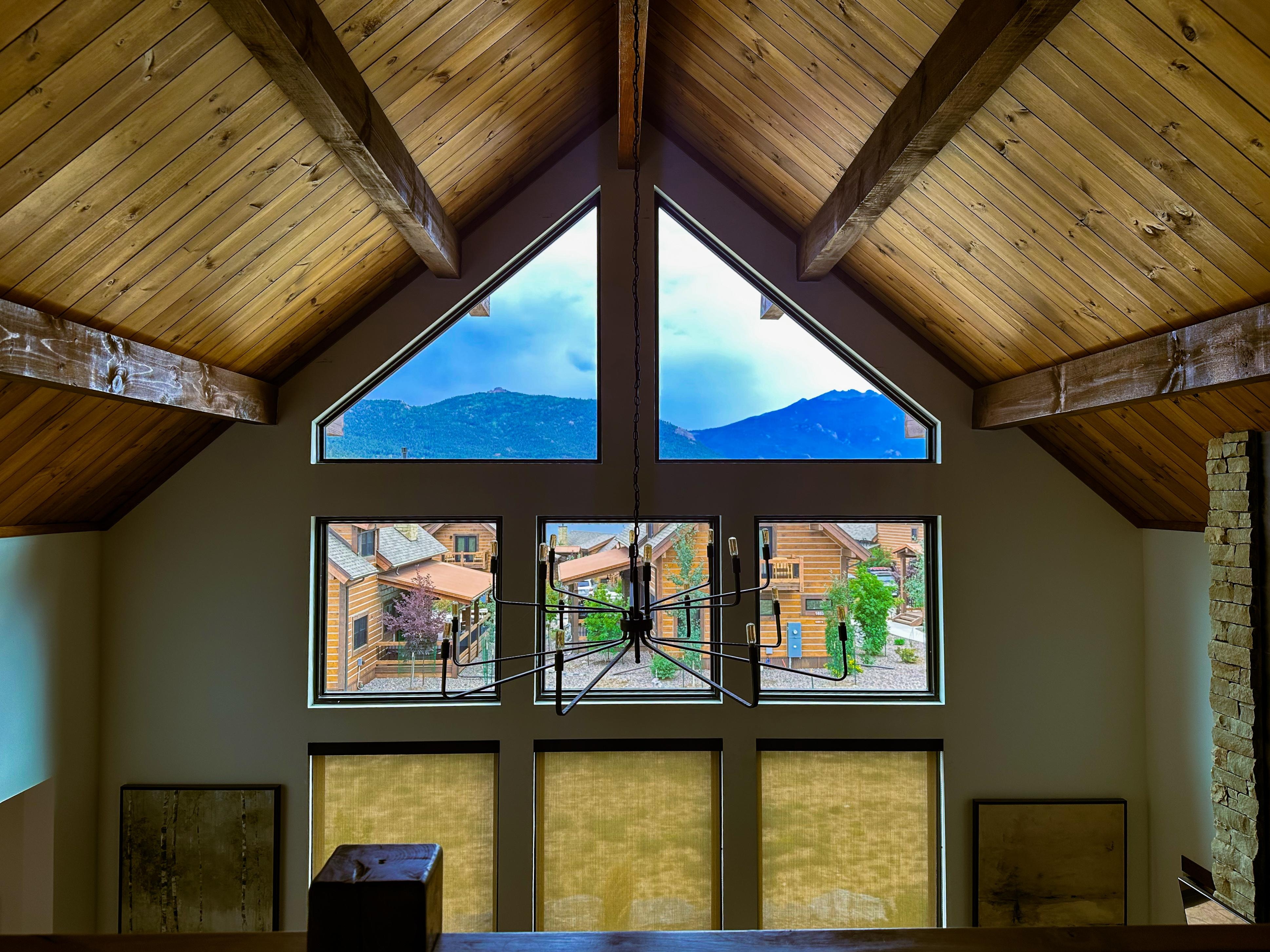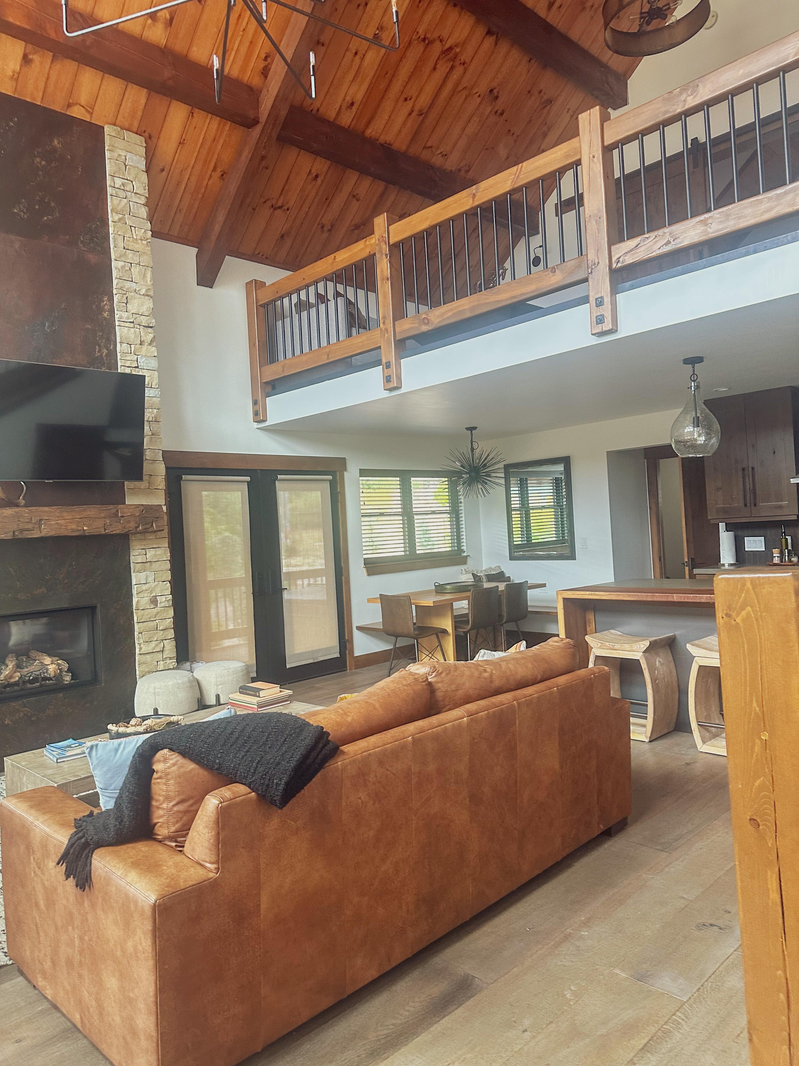 For the ultimate in mountain cabin luxury, look no further than Voyago Vacation Rentals. This exclusive new residential-resort community offers unparalleled beauty, with its pristine lake and breathtaking mountain views. Step into this exquisite log cabin, featuring 1,577 square feet of elegantly designed space. The cabin boasts two master suites, two full bathrooms, and a convenient powder room. Enjoy the fresh mountain air on the balcony or cozy up in the loft. The grand living area is highlighted by a soaring 25-foot fireplace, while the state-of-the-art kitchen is fully equipped for any culinary adventure. Gather for meals in the dining area or fire up the BBQ grill on the patio, where you'll also find another stone gas fireplace and a 6-person jacuzzi. With dramatic 25-foot floor-to-ceiling windows and both heating and cooling systems, this cabin ensures comfort throughout the year. This pet-friendly cabin is perfect for a mountain getaway, welcoming up to two dogs for a $220 pet fee, ideal for travelers seeking dog-friendly accommodations in Estes Park.