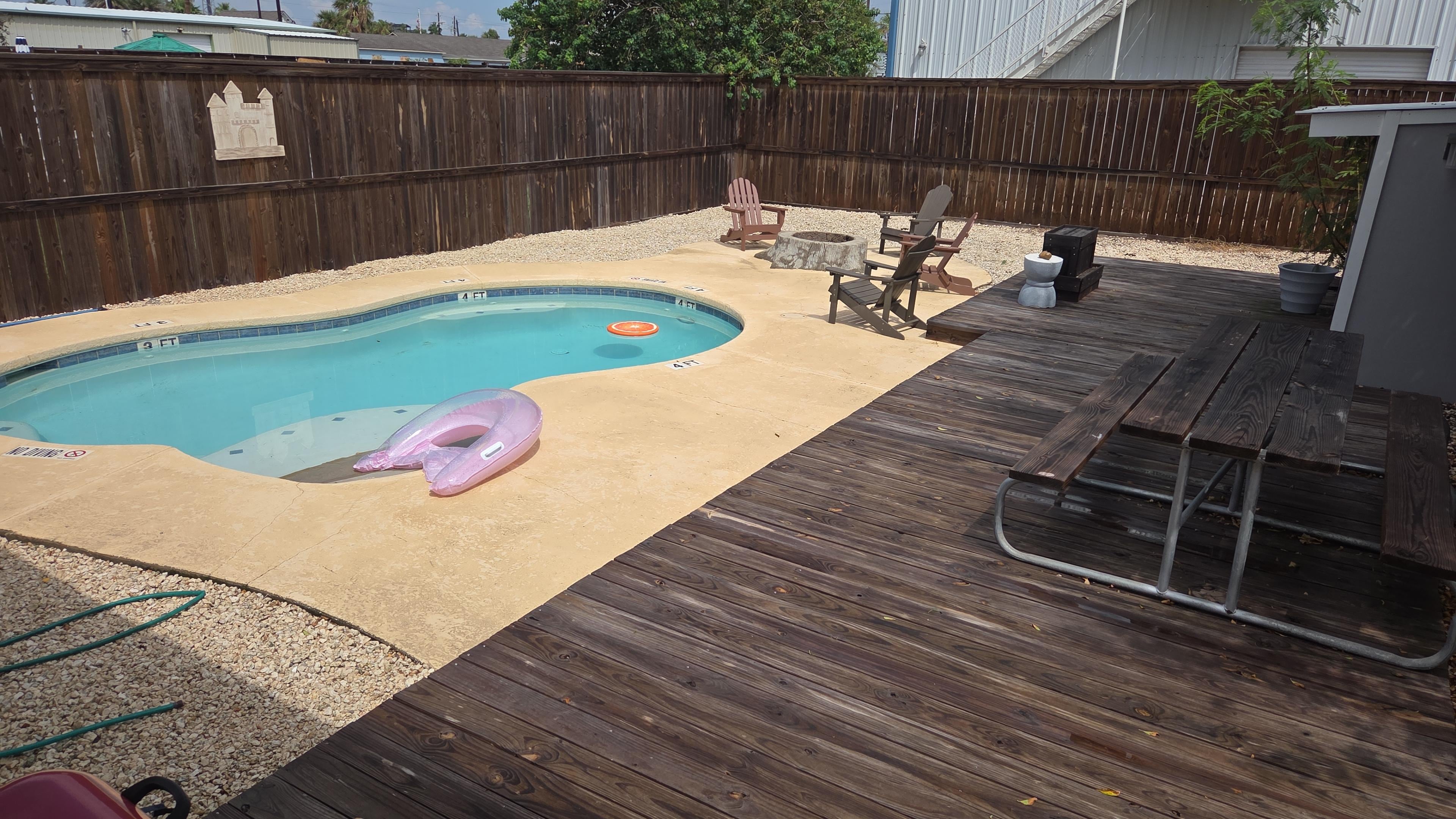 The backyard has a nice in-ground swimming pool and a fire pit. There are even a set of bikes to pedal around the island. Easily walk right over to Beach Street and many of the island’s finest restaurants will be found right there from seafood to Mexican, barbecue to Cajun!