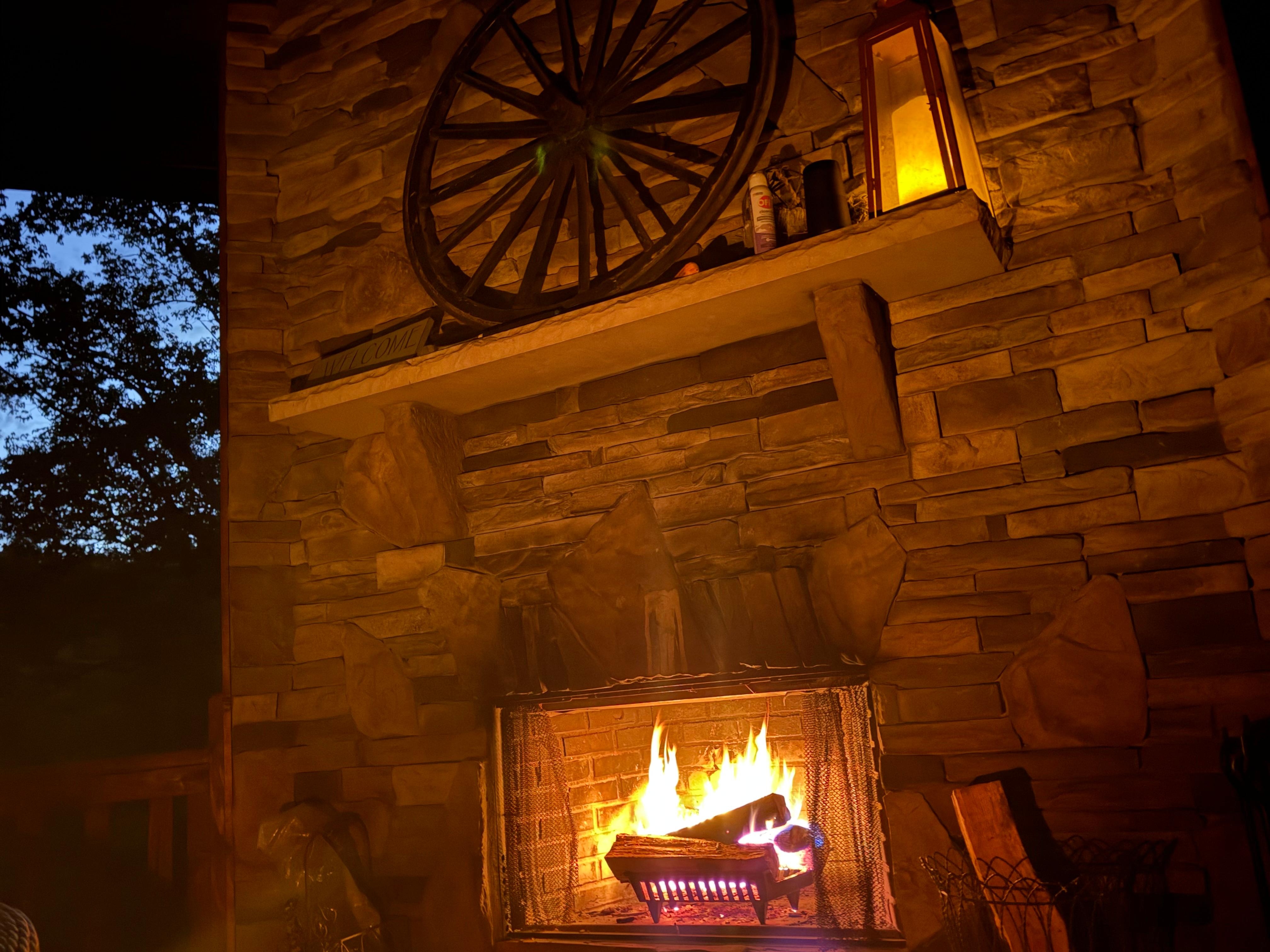 The wraparound porch is furnished for relaxation and comfort and includes a floor to ceiling stone fireplace, day bed, rocking chairs, fireplace seating for 4, ceiling fans and a Pit Boss barbeque grill and smoker. A selection of hickory, mesquite, and applewood pellets allows the grill-master additional creativity to fire up entrees right at home. The whole house generator automatically kicks on if the power goes out so your visit can continue uninterrupted.