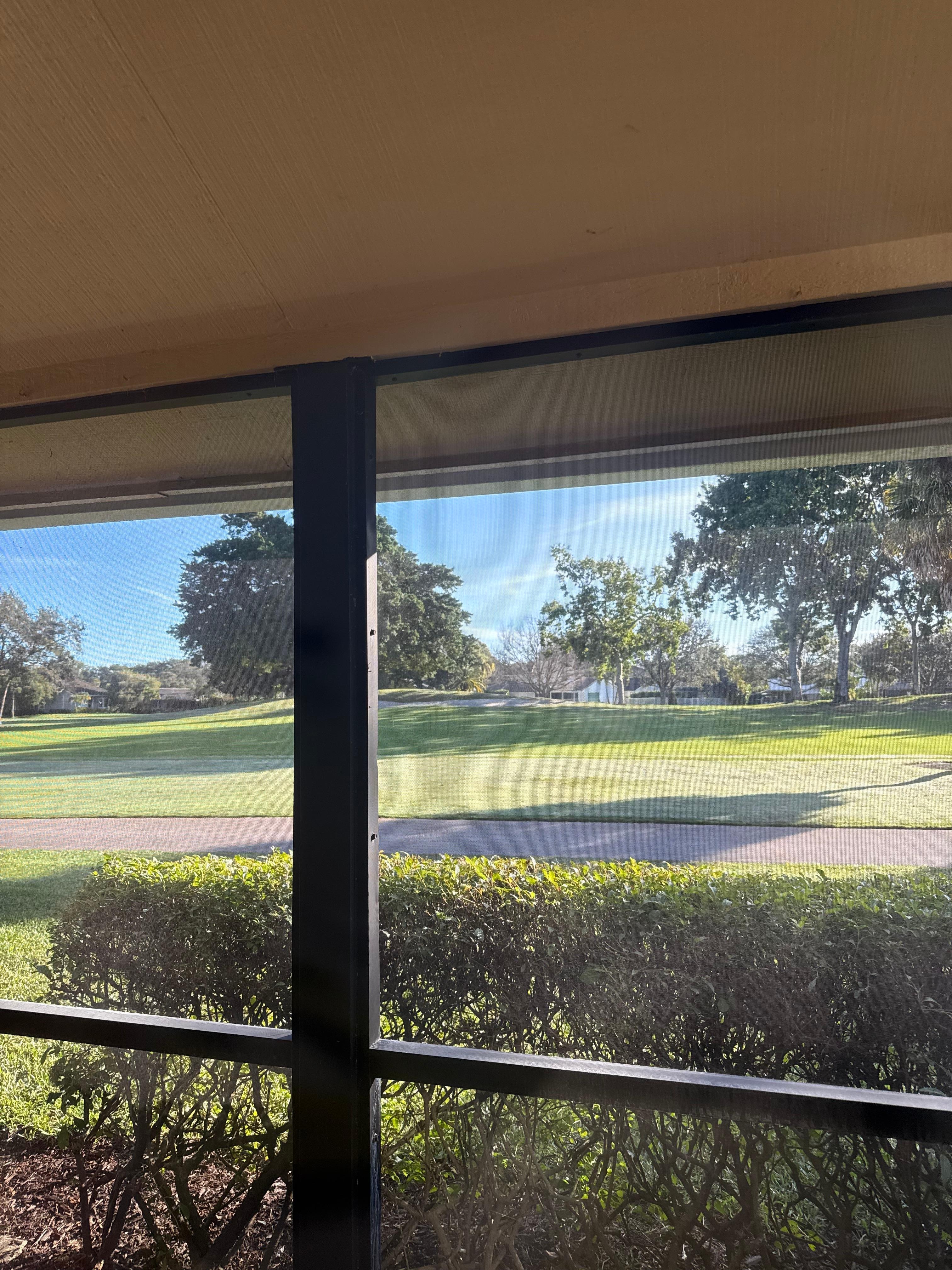 - Screened in lanai with direct views of the 9th hole of the Fazio Golf Course at PGA National