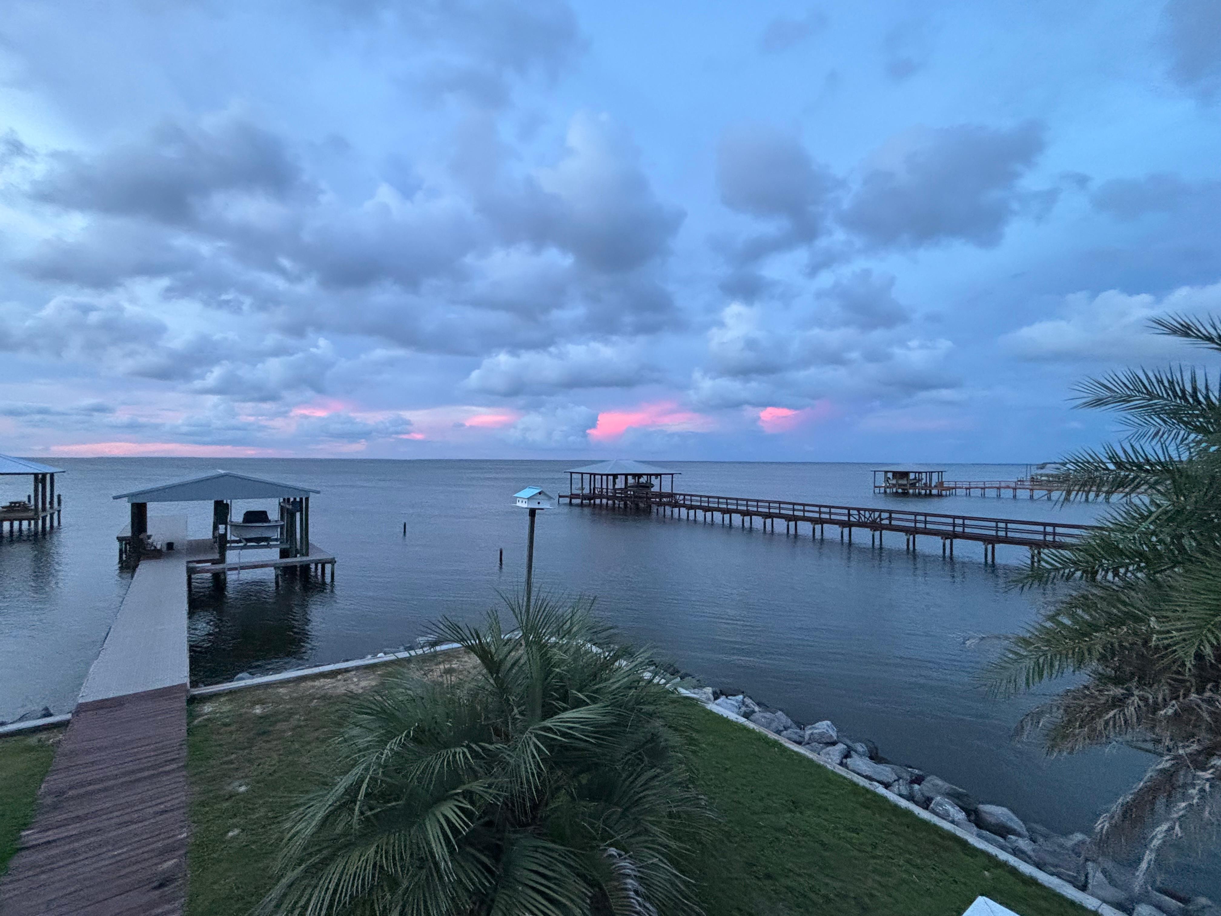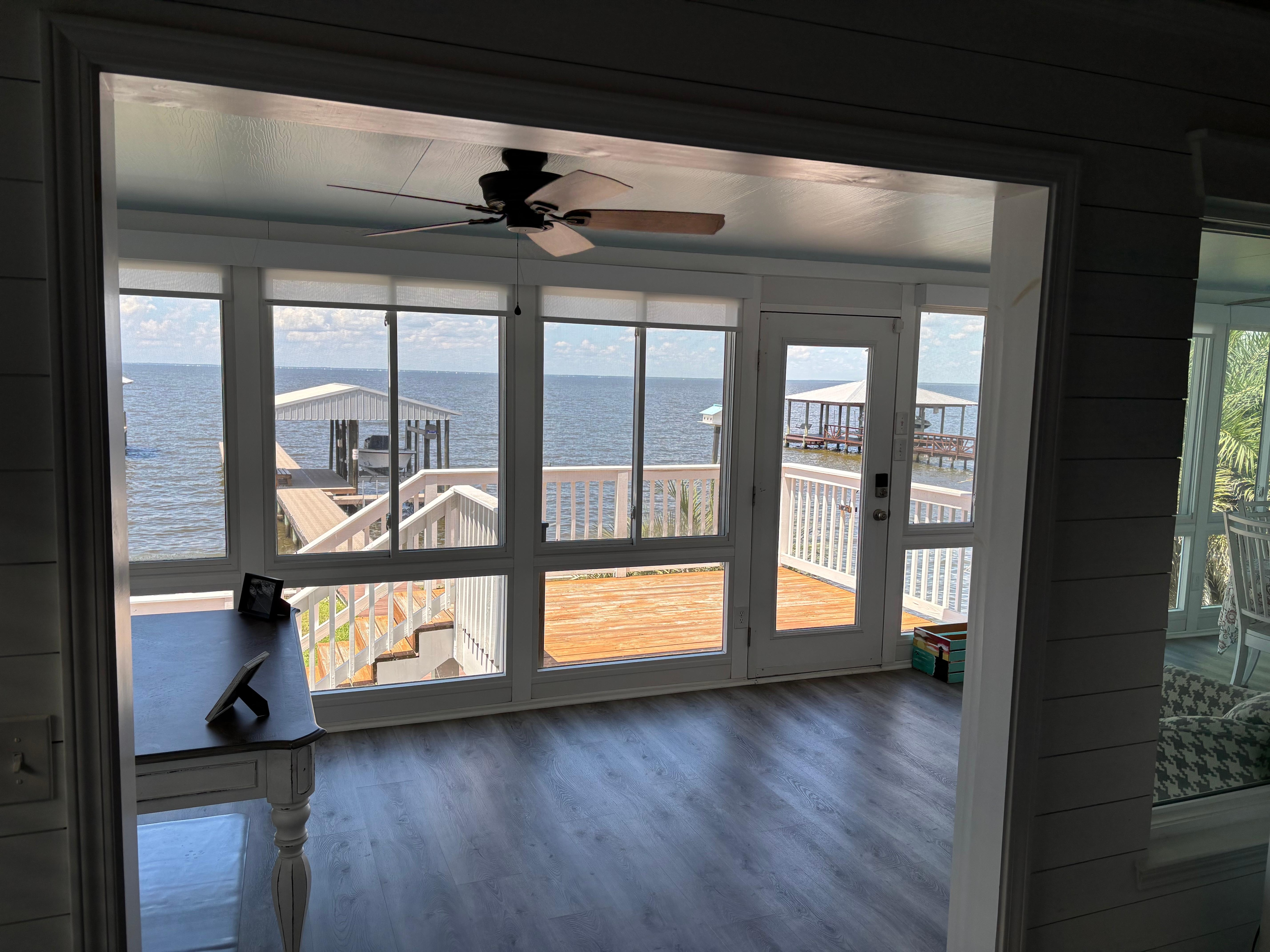 B on the Bay is a private home down Fort Morgan Rd. which keeps it out of the bustle of the main beach road. Enjoy watching the rising and setting sun from the back balcony or in the lawn chairs. Take a walk out onto the dock and really take in the bay air. The front yard has a garden that keep the area colorful. The entire home features wooden floors.