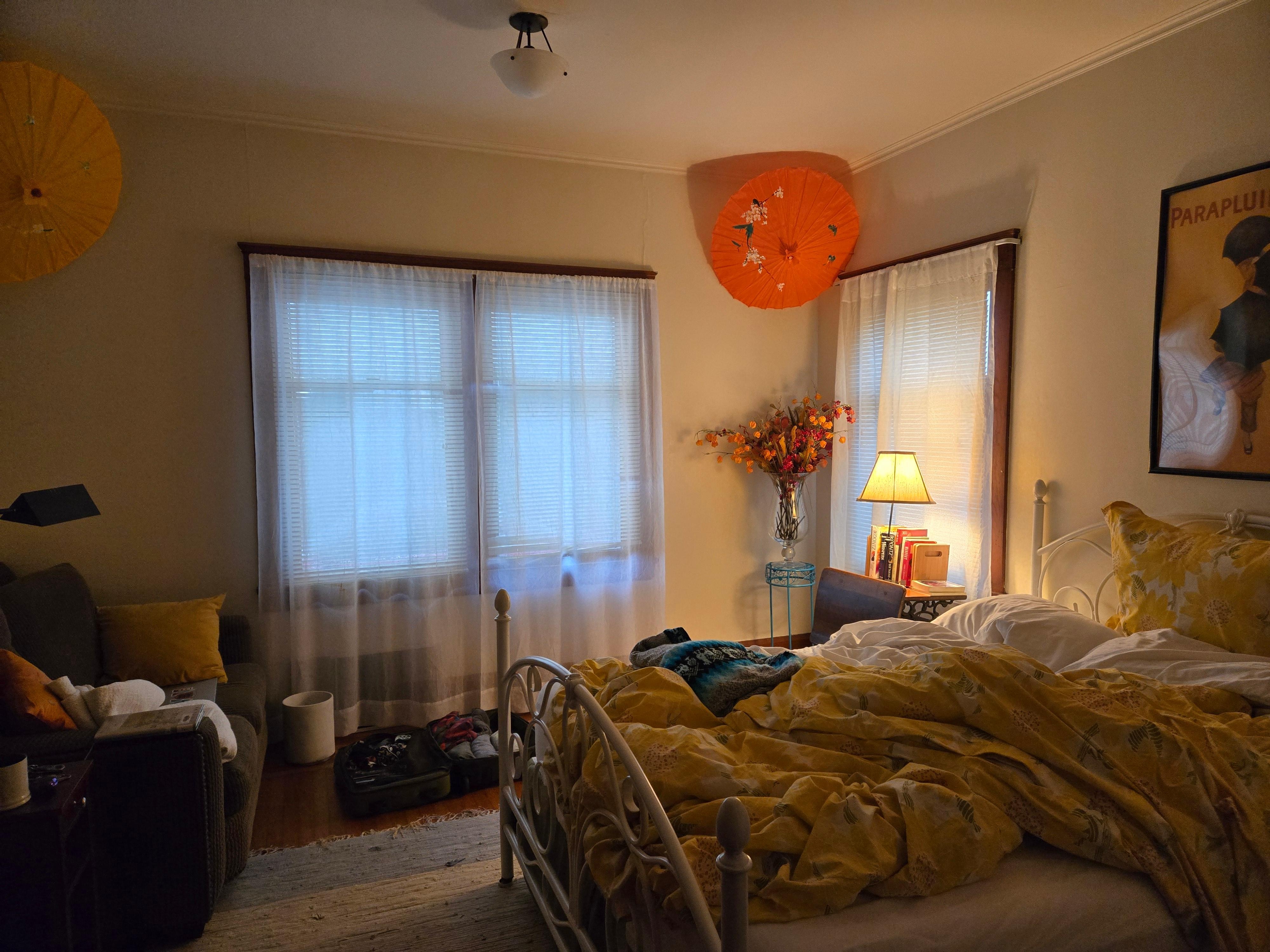 This was such a restful stay, we loved being within walking distance to a fabulous health food grocery. Beds I think are full not queen. Couches super comfy for reading. Kitchen well equipped, I especially appreciated the ceramic plates. Not all windows open but we were able to prop several open during the day to air it out. Overall loved having so much space for an affordable price and getaway.