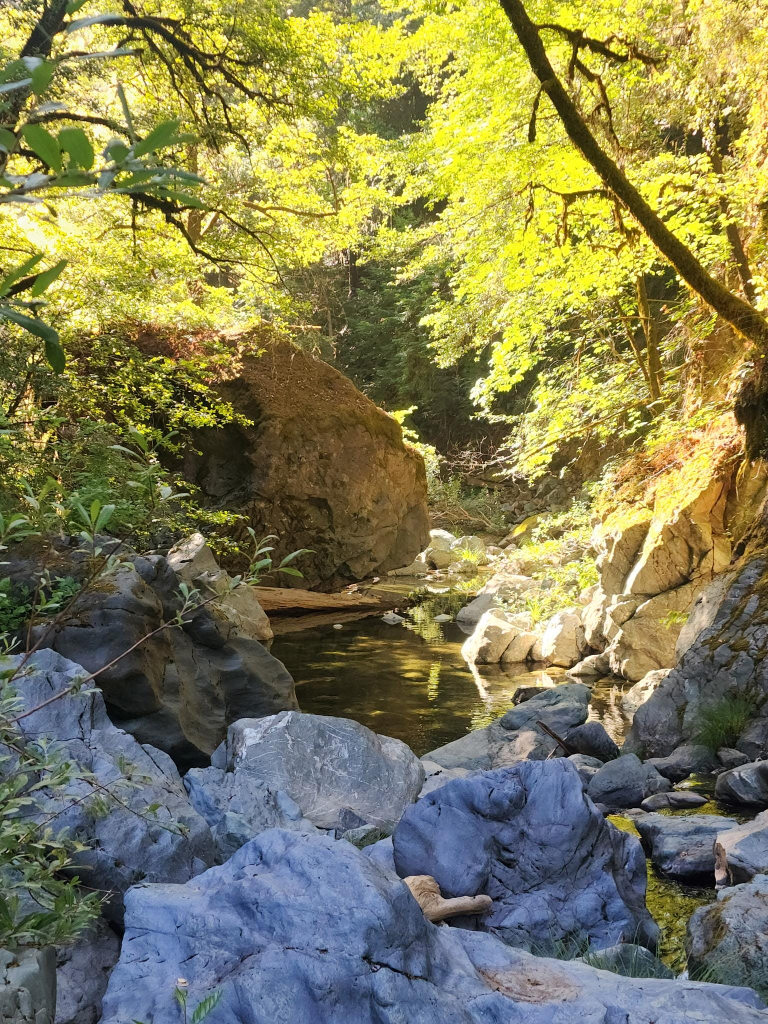 Buck Hollow is your personal retreat in the hills of historic Cazadero! The crystal-clear waters of Ward Creek flow between massive boulders creating perfect spots to cool your toes or splash about! Follow the trails… You’ll enjoy views of the creek and towering trees throughout this acre+ property. Outdoor dining, multiple patios and decks, a shade-graced hot tub, and outdoor shower keep your attention in the immediate space around the house, but inside is fantastic too!