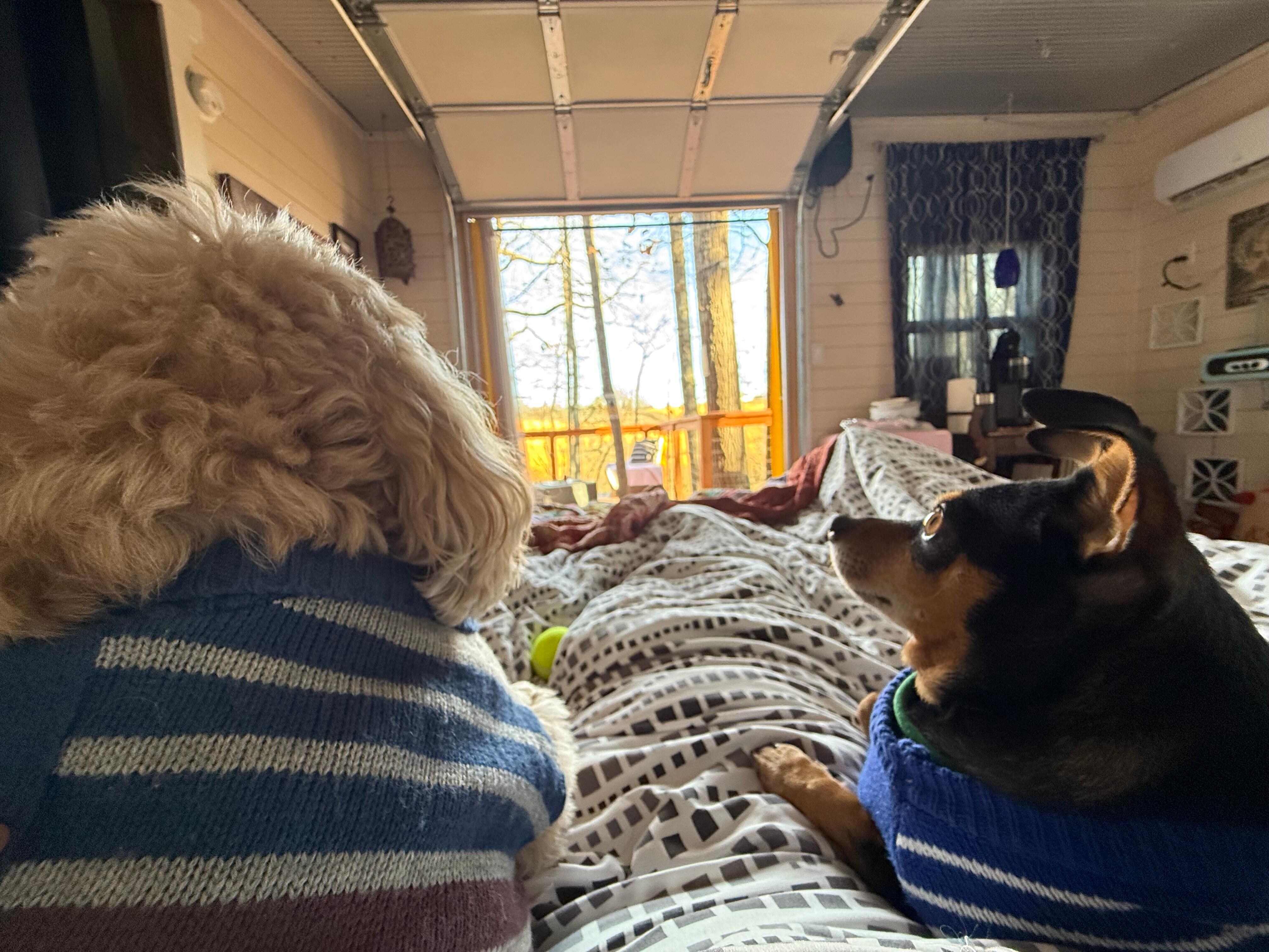 Mosaic Cabin on the river is an open concept tiny home with direct access to the outdoors. We bring the outside in (if you so choose)! She’s built with love. Accents include shiplap, metal, custom tiled bathroom, garage door and opener! You’ll find a queen bed with luxurious bedding to give you the perfect night’s rest. The bathroom is a retreat in itself. Relax and soak in our freestanding tub with a full Mosaic tile wall in background. Took us a couple weeks and every tile is a leftover from another project. We upcycled! You’ll be surrounded by eclectic art, fantastic lighting, a record player, a mini fridge, keurig (we provide the k cups, creamer, tea and honey sticks). The studio has a garage door that opens to an expansive 240 sq. ft deck…we call that your living room! The property is pristine. You’ll be surrounded by warm lighting in the trees. You’ll find hammocks, swings, roses and wildflowers all spring and summer, fire pits with cooktops for grilling, and the absolute best space in the area for some night sky viewing. You can easily walk into Sparta for dinner or drinks or a day of shopping. Two guests only please. Oh and don’t forget your souvenir photo in front of the angel wings! PS-we don't have WiFi but good cell service so be sure to plan for that!